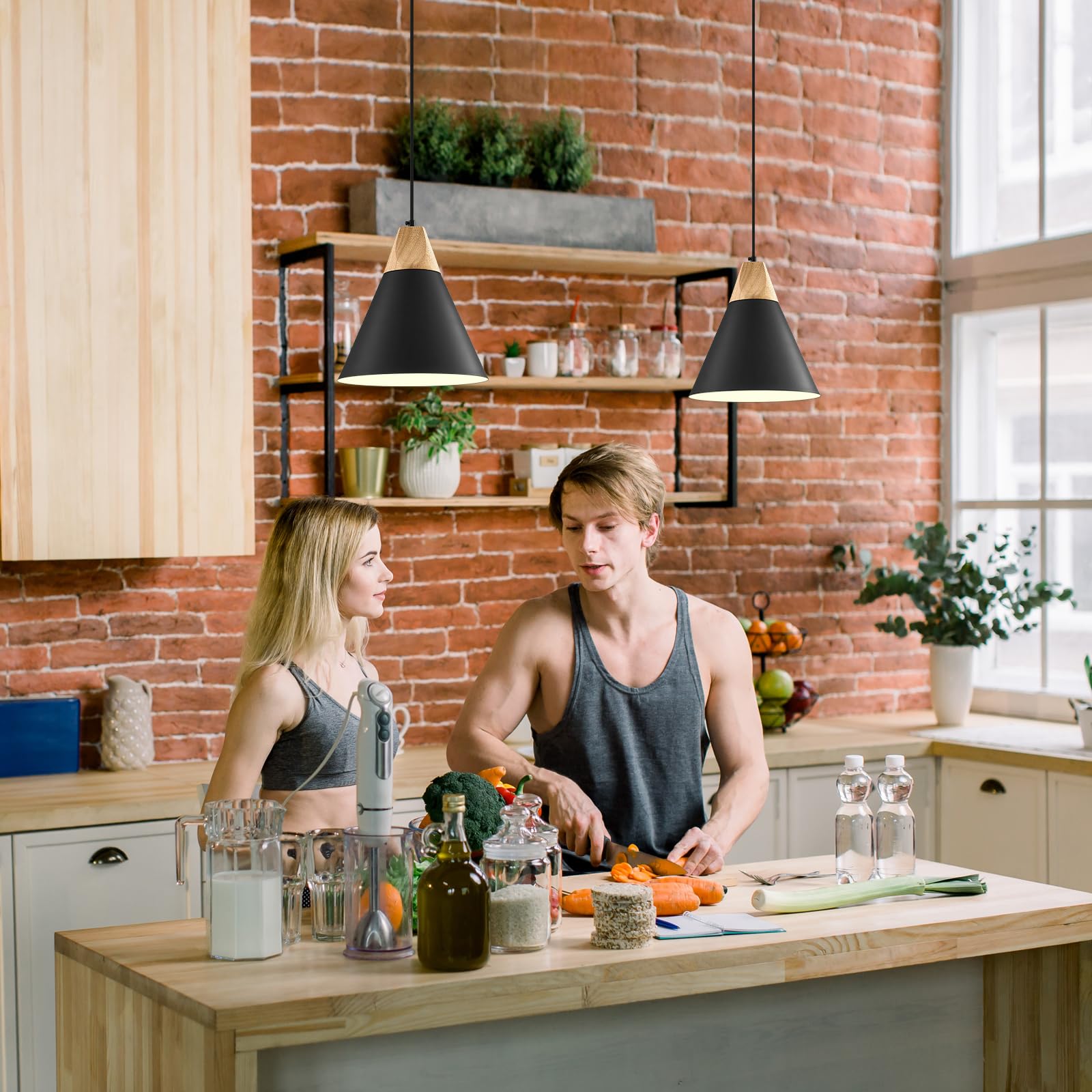 Black Pendant Light, 2 Packs 9.4inch Farmhouse Pendant Light, Kitchen Pendant Light, Industrial Pendant Light, Black Pendant Lights Kitchen Island for Kitchen, Bar, Bedroom