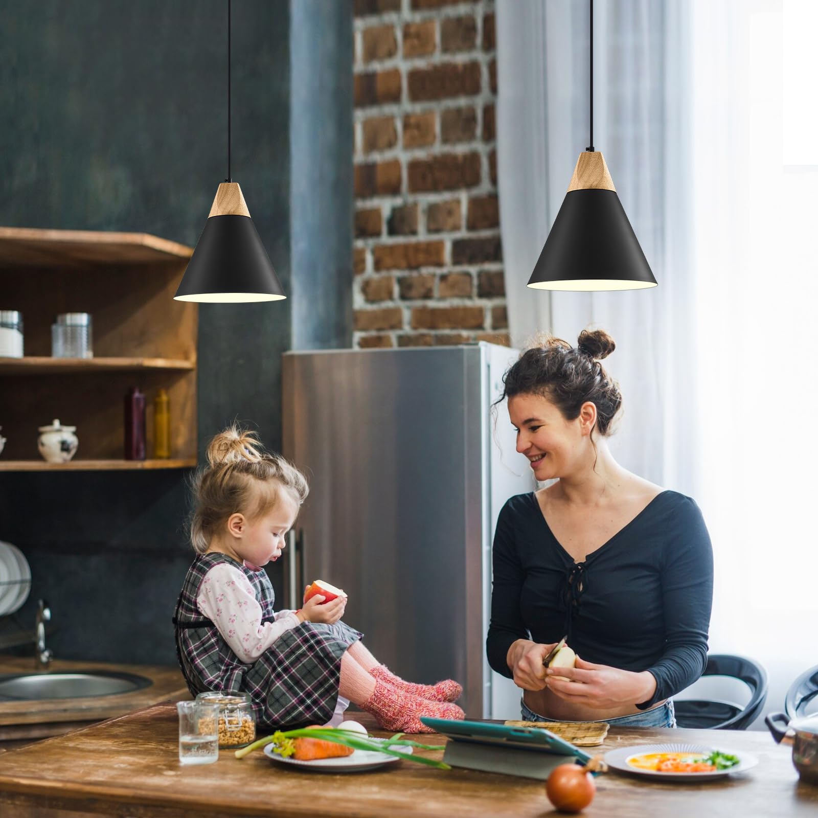 - Perfect Design:This 2 packs black pendant lighting for kitchen island combines both vintage and industrial styles. This pendant light fixtures are perfect for front warehouses, hallways, dining rooms, kitchen islands, worktops, stairwells, restaurants, etc