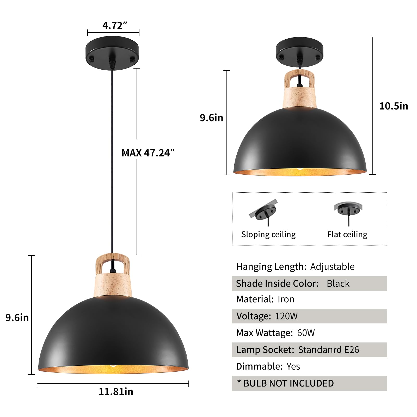 • Installation Requirements: This black pendant lights kitchen island for bedroom can be installed in flat and sloping ceiling. Hardwired. E26 US standard lamp socket, compatible with a variety of bulbs(Max:60W).Likes Edison, CFL or LED light bulbs, 110-120V. [NOTE]:BULB NOT INCLUDE