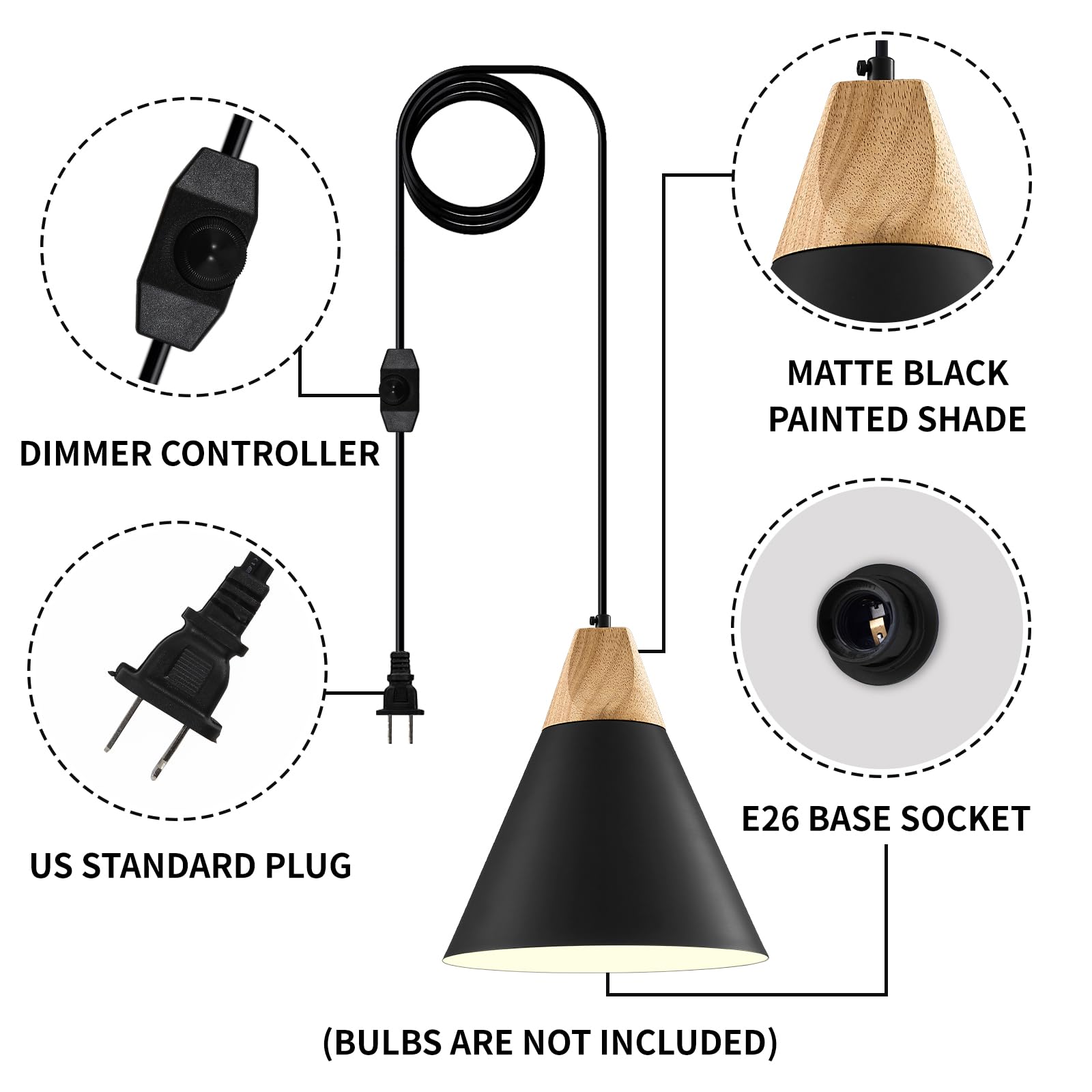 • Installation Requirements: This black pendant lights kitchen island for bedroom can be installed in flat and sloping ceiling. Hardwired. E26 US standard lamp socket, compatible with a variety of bulbs(Max:60W).Likes Edison, CFL or LED light bulbs, 110-120V. [NOTE]:BULB NOT INCLUDE