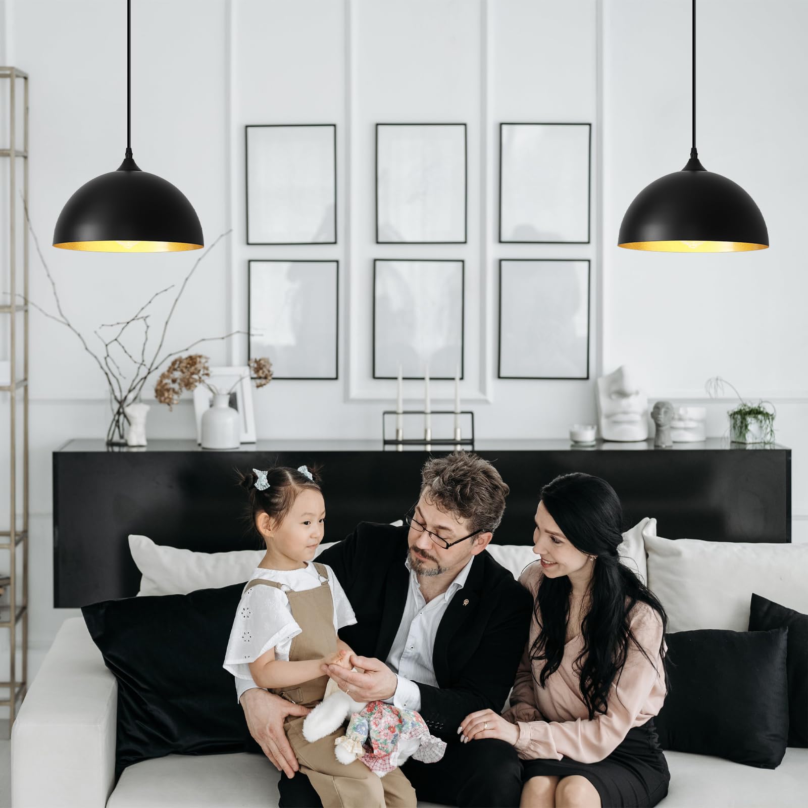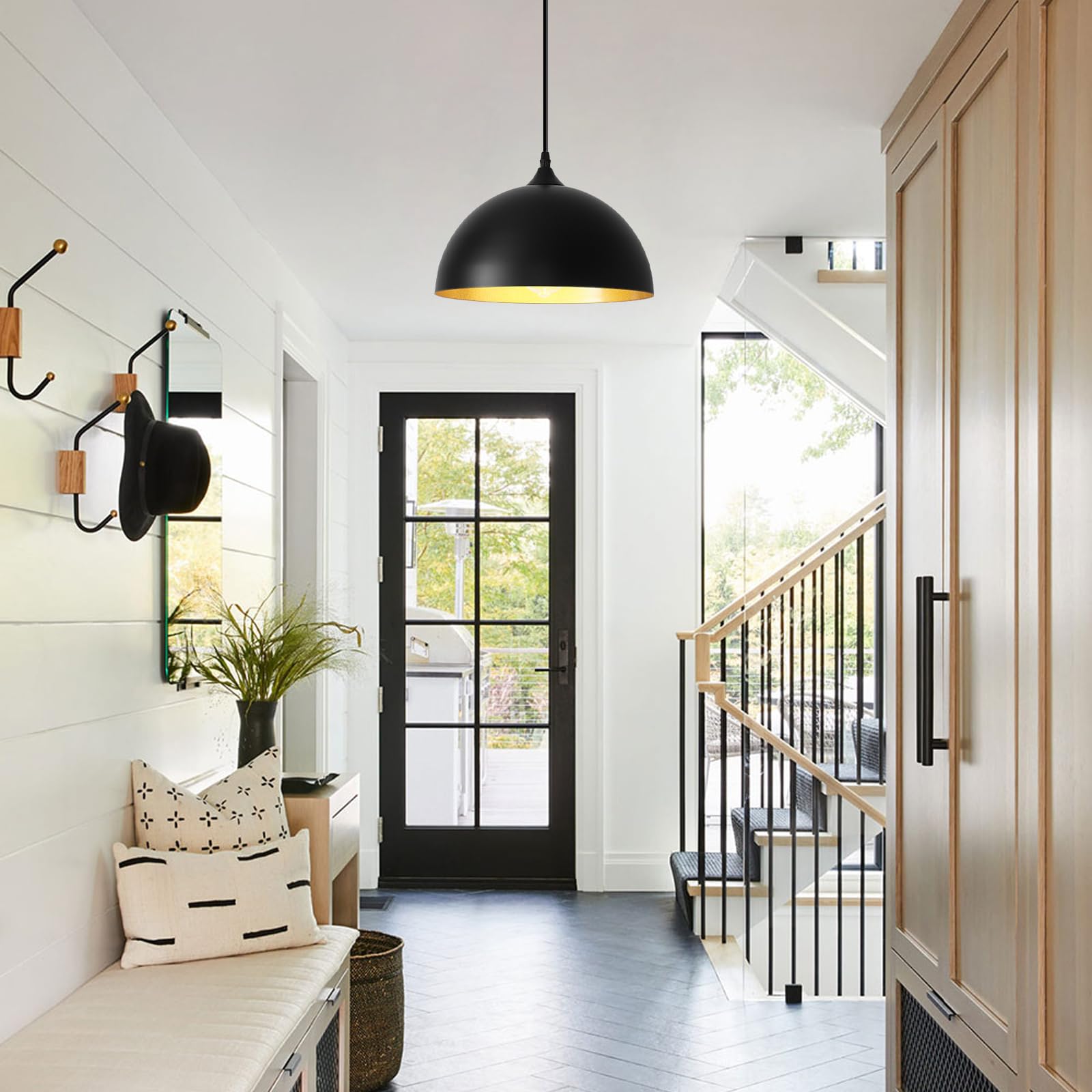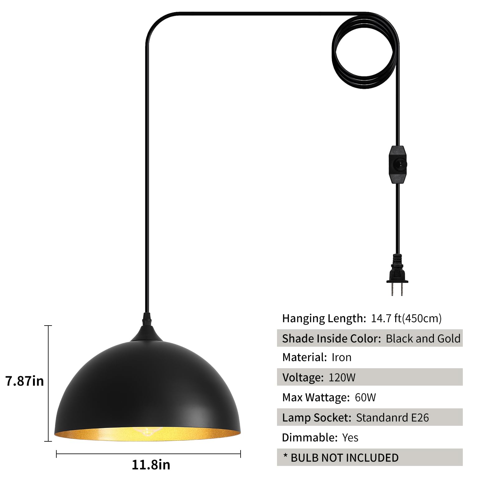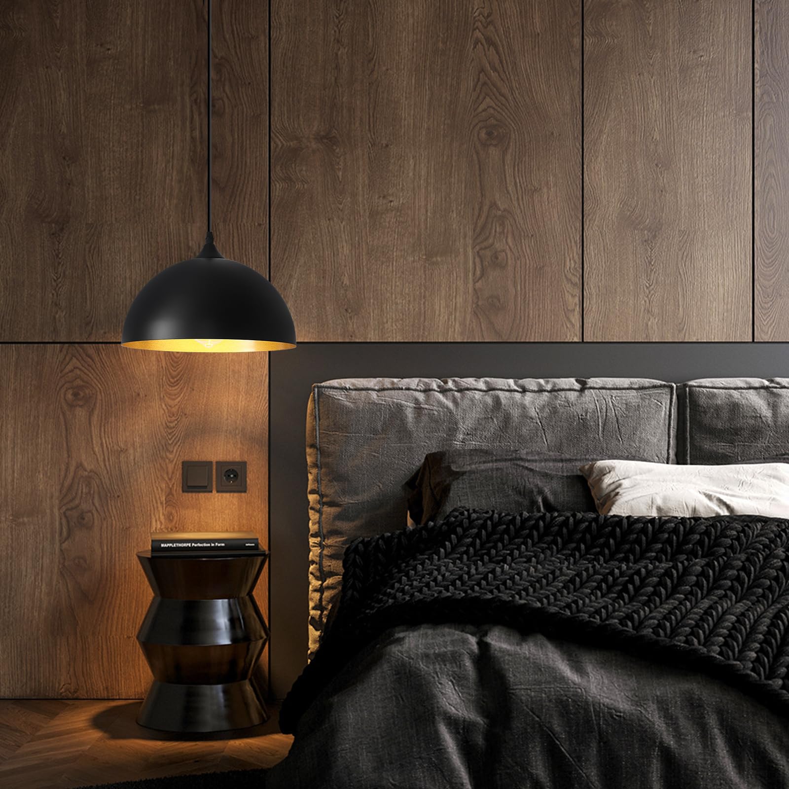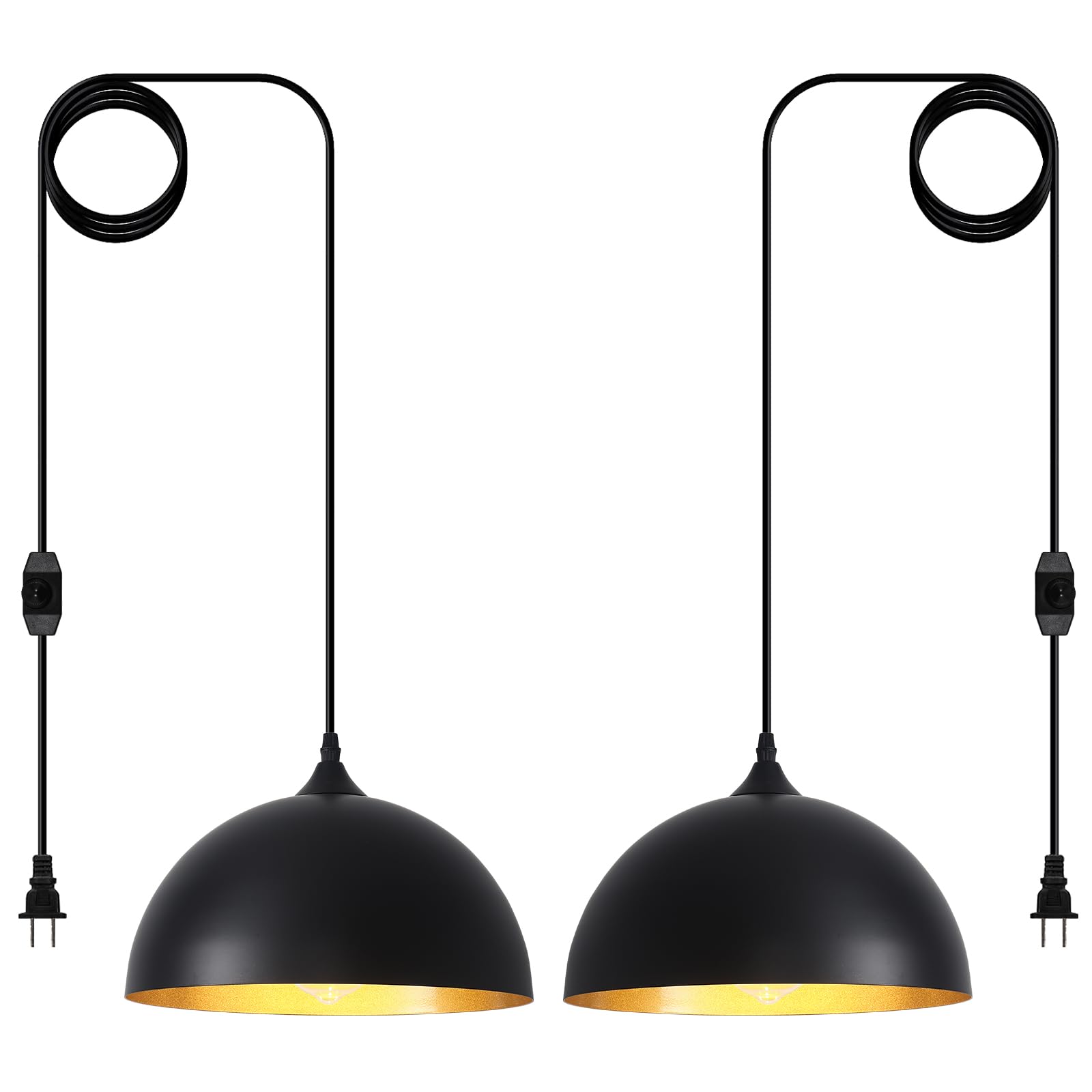 - Perfect Design:This 2 packs plug in pendant light combines both vintage and industrial styles. This farmhouse pendant light is black on the outside and gold on the inside. They are perfect for Kitchen, Bedroom, Living Room, Dining Room,Hallway