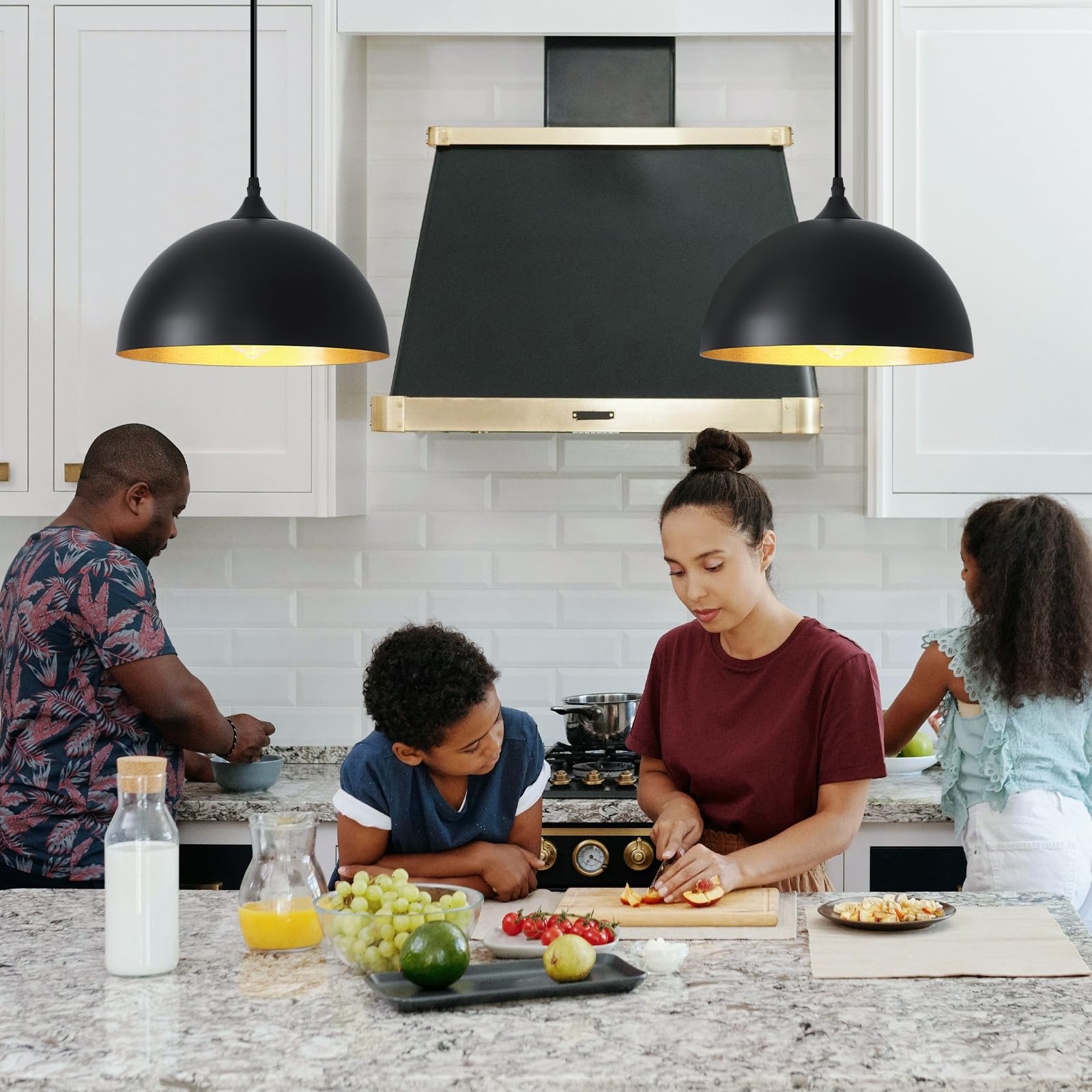 - Adjustable Cord: The kitchen pendant lights kitchen island with 14.7ft plug in cord, with a golden finish inside to diffuse the light, Also included in the package are 3 hooks to make it easy for you to organise long cables.Can be installed in all parts of the room, both flat and sloping