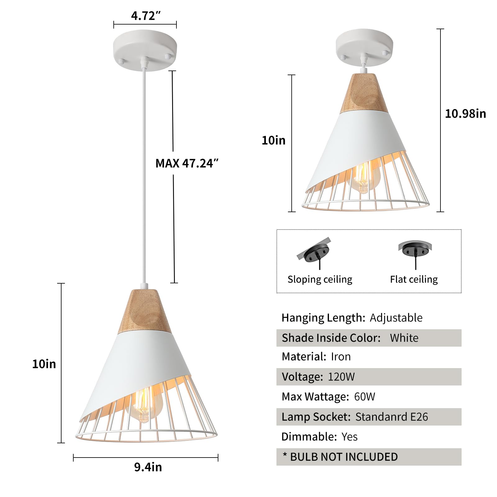 - Installation Requirements: This farmhouse pendant lights kitchen island for bedroom can be installed in flat and sloping ceiling. Hardwired. E26 US standard lamp socket, compatible with a variety of bulbs(Max:60W).Likes Edison, CFL or LED light bulbs, 110-120V. [NOTE]:BULB NOT INCLUDE