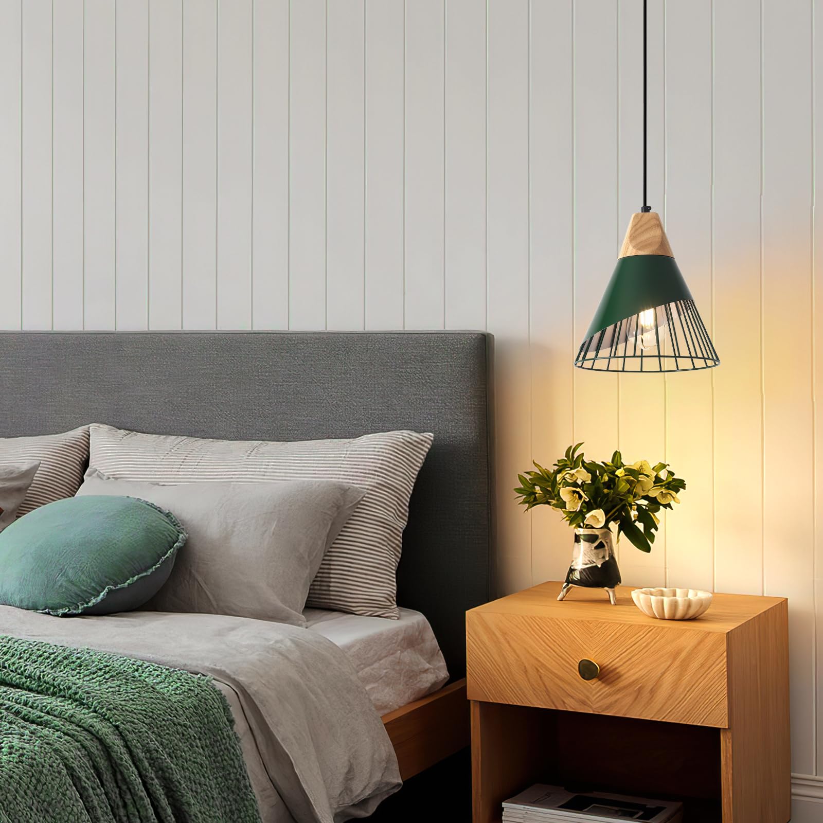 - Special Design: We chose quality wood as the ornament of this green pendant light, and also adopted special techniques to increase its durability, not only in the shape of the more beautiful, but also to increase its durability, an indispensable decoration in the home