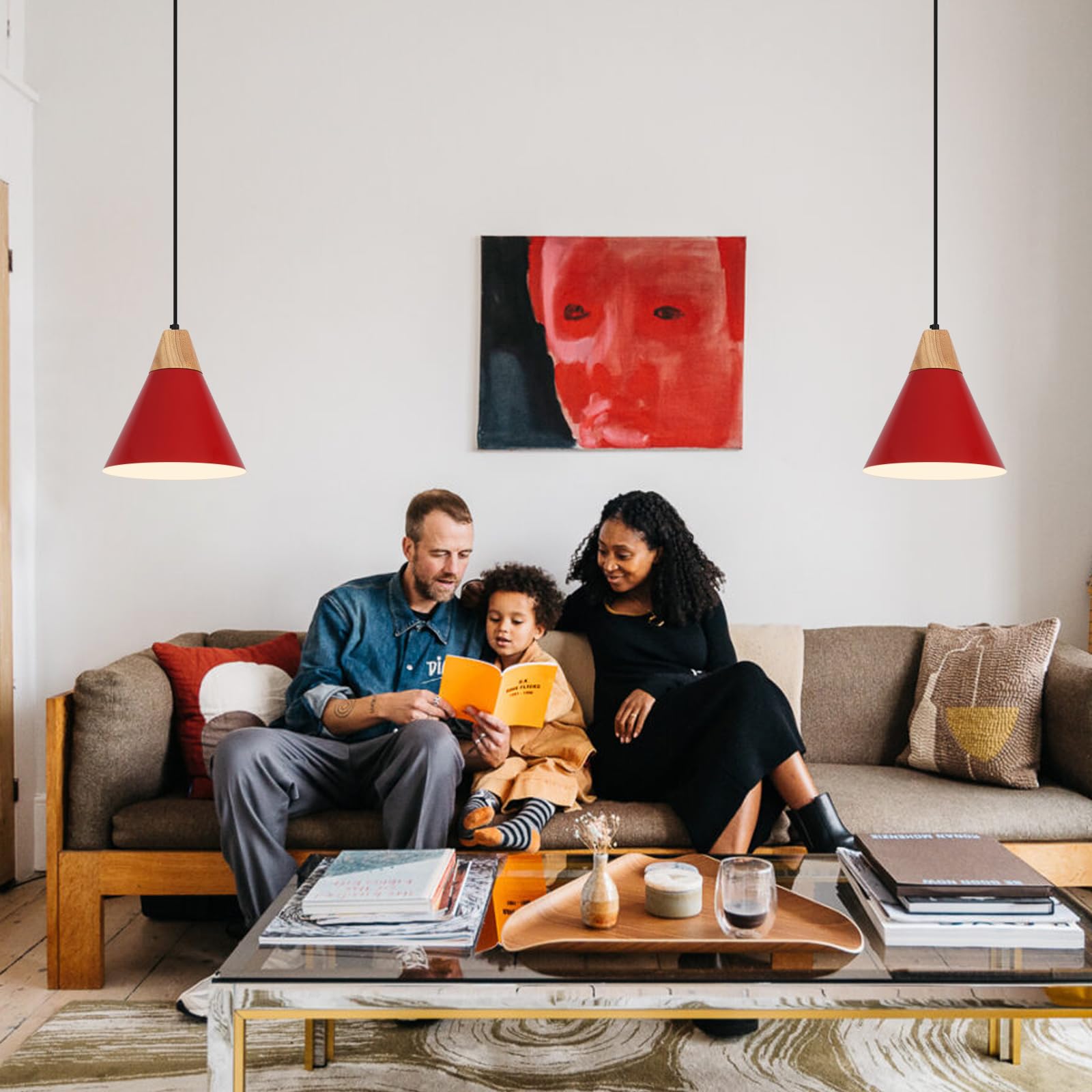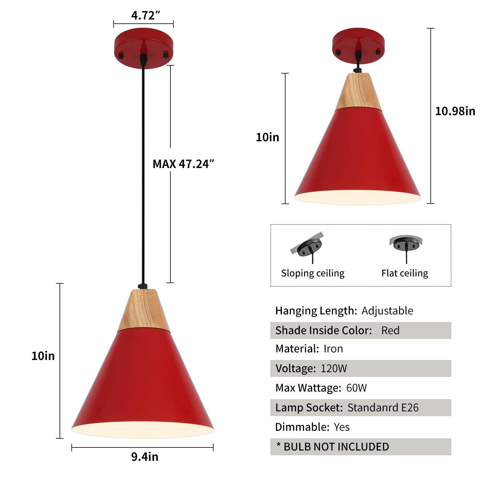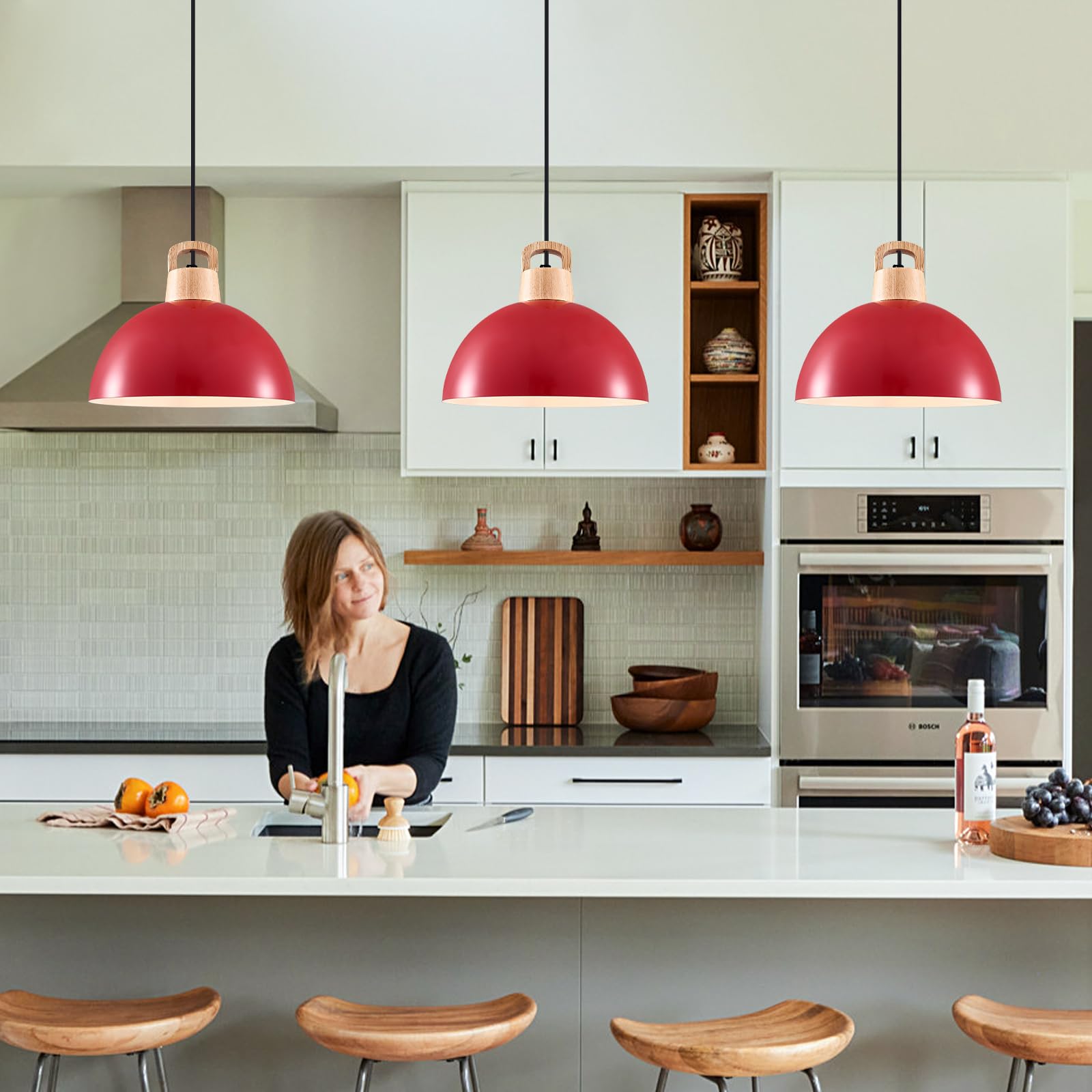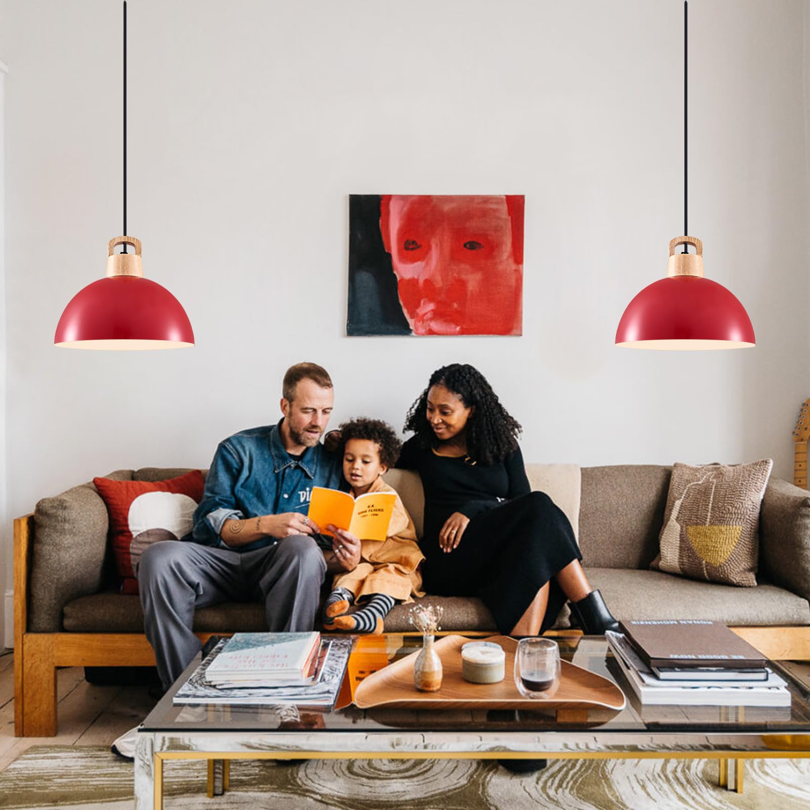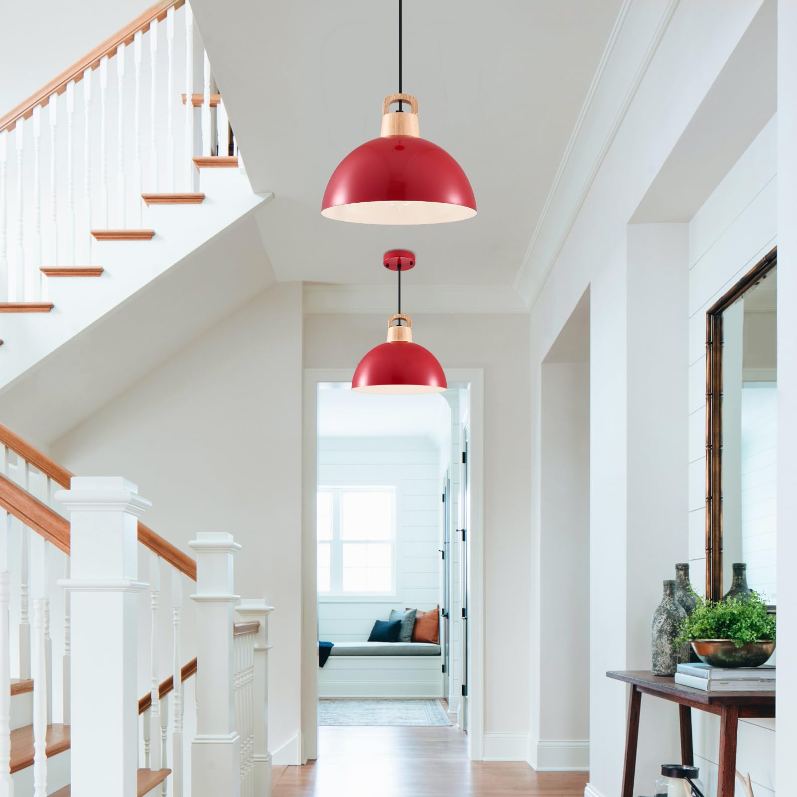 Farmhouse Pendant Light, Red Pendant Light 2 Packs 9.4inch, Kitchen Pendant Light, Industrial Pendant Light, Farmhouse Pendant Lights Kitchen Island for Kitchen, Bedroom, Bar