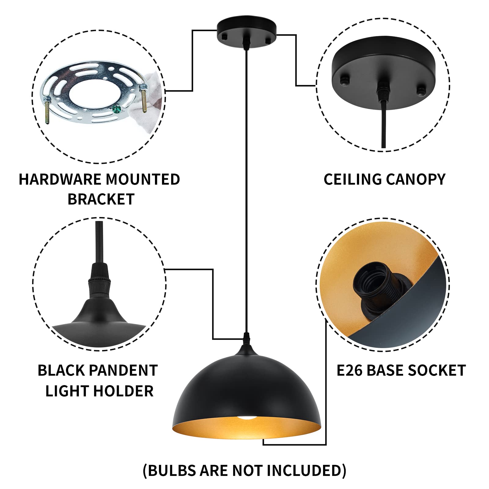 • Ideal Dimension:The size of light fixtures ceiling hanging is 11.81inches W,7.87inches H,with 54.7inch cable,you can adjust according to you .E26 US socket, compatible with a variety of bulbs(Max:60W).Likes Edison,CFL or LED light bulbs, 110-120V. [NOTE]:BULB NOT INCLUDE
