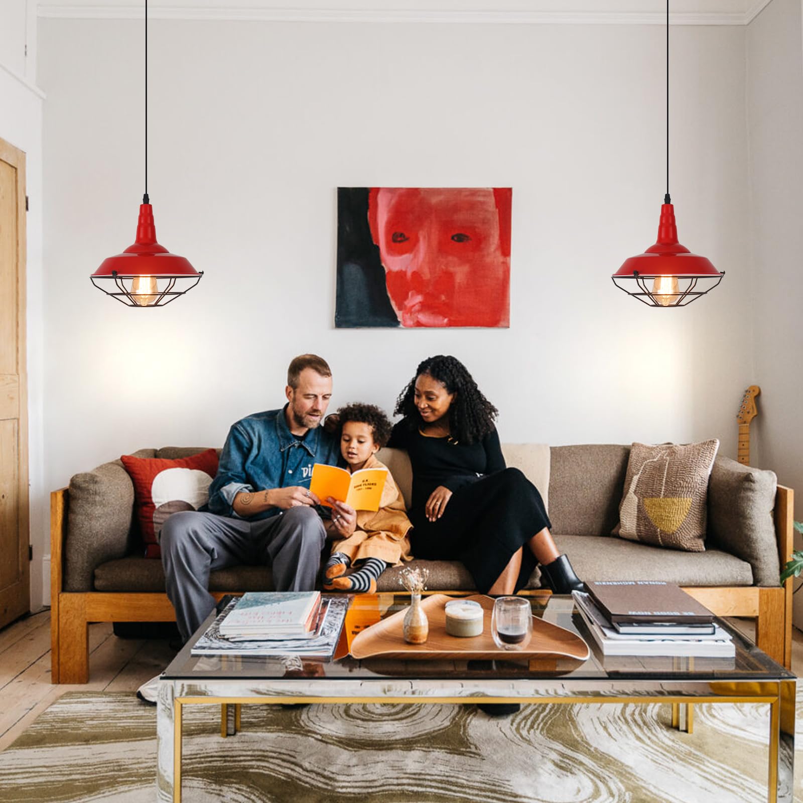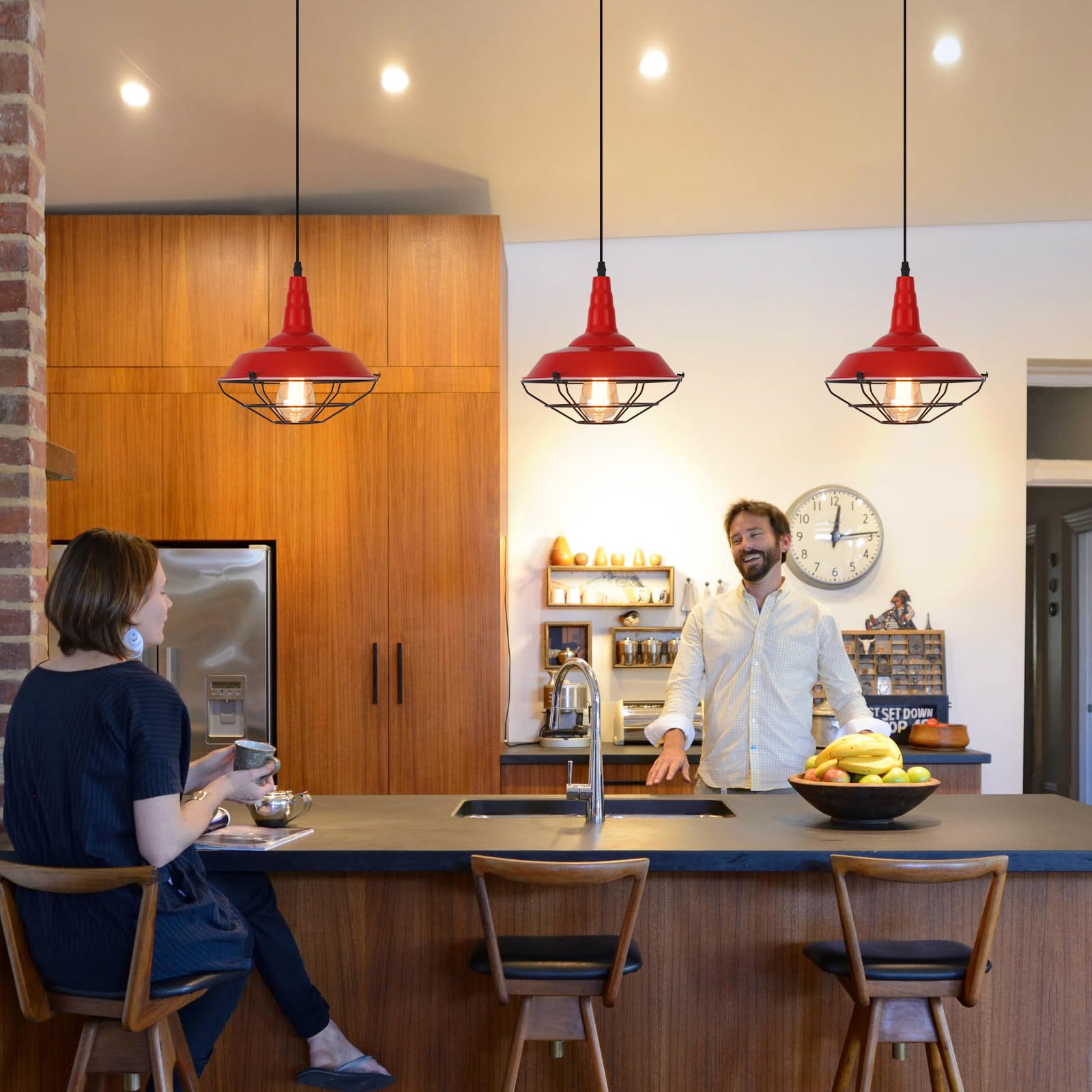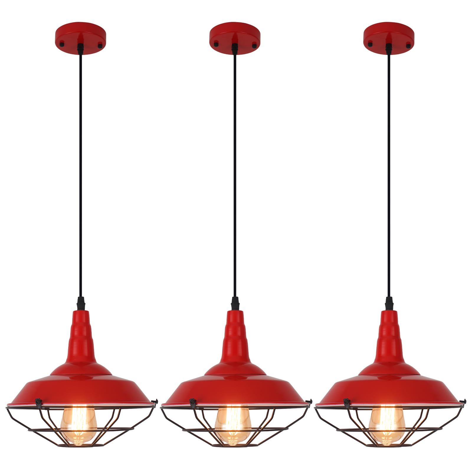 Farmhouse Red Pendant Light, 3 Packs 10.5 inch, Modern Pendant Lighting, Kitchen Pendant Lights, Industrial Pendant Light, Pendant Lights Kitchen Island for Bedroom, Living Room, Bar