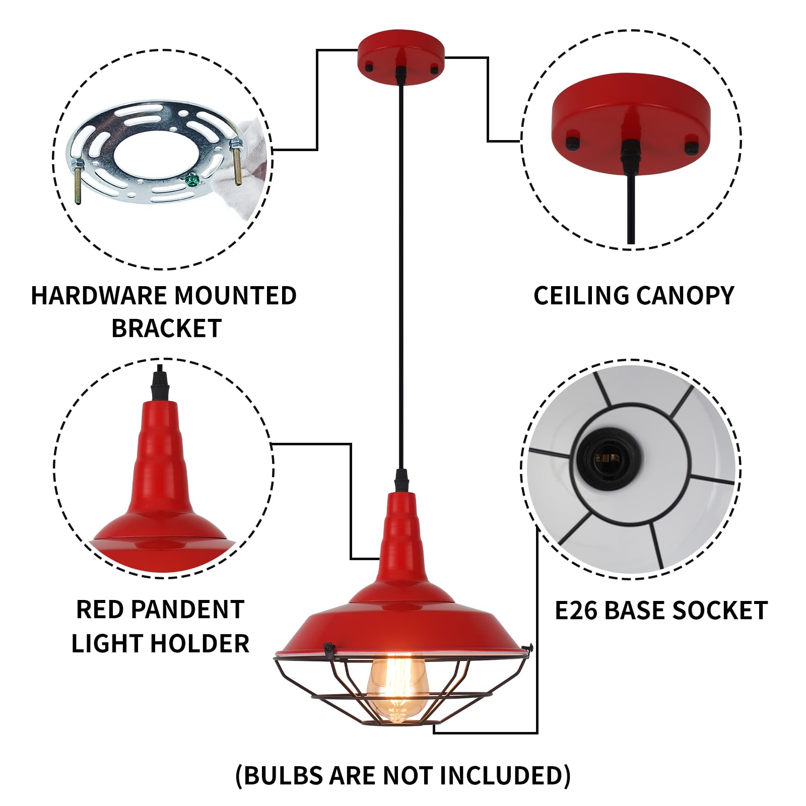- Installation Requirements:This farmhouse pendant light can be installed in flat and sloping ceiling. Hardwired. E26 US standard lamp socket, compatible with a variety of bulbs(Max:60W).Likes Edison, CFL or LED light bulbs, 110-120V. [NOTE]:BULB NOT INCLUDE