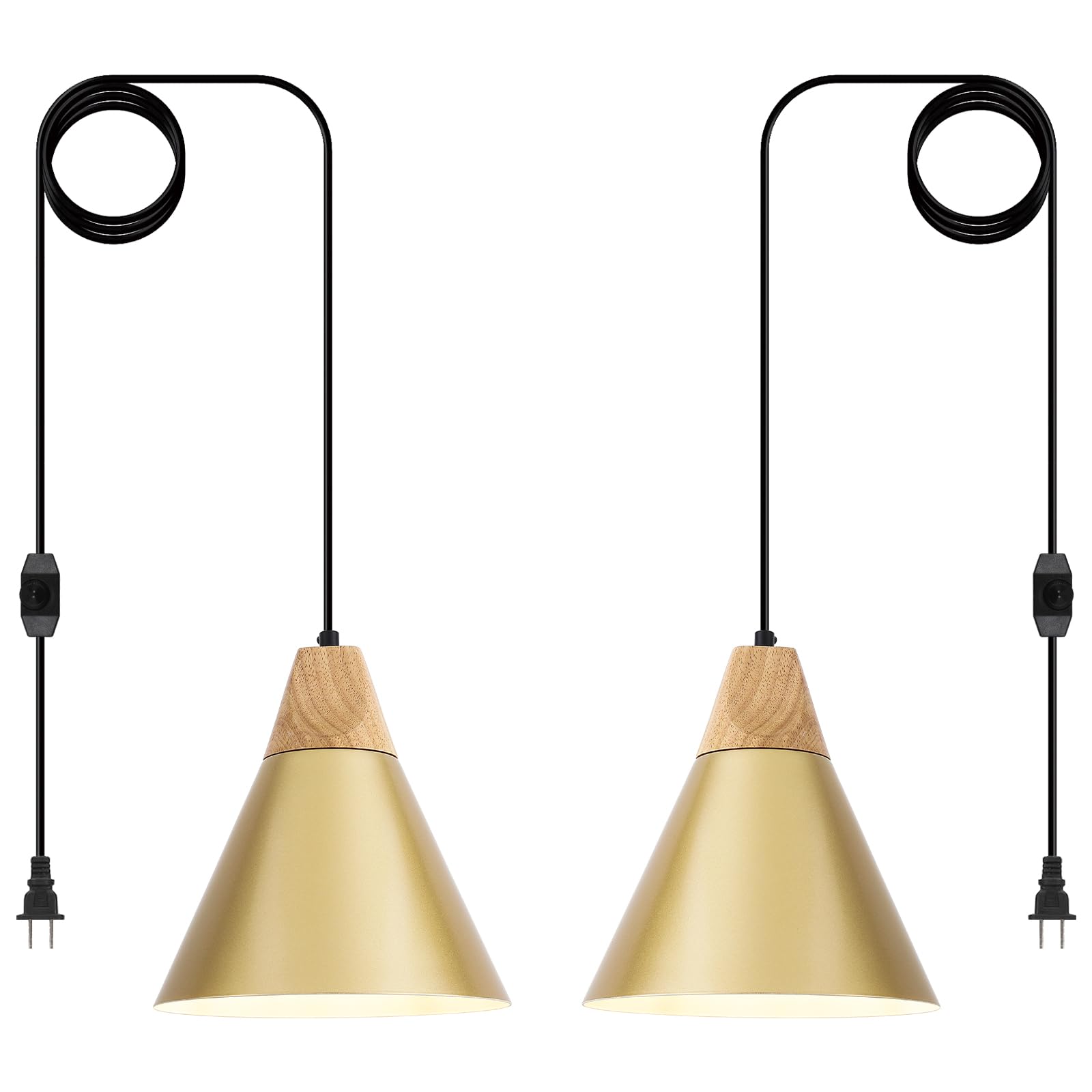 Gold Plug in Pendant Light, 2 Pack 9.4inch Hanging Lights with Plug in Cord 14.7 ft, Hanging Pendant Light, Hanging Lamp Plug in for Bedroom, Kitchen