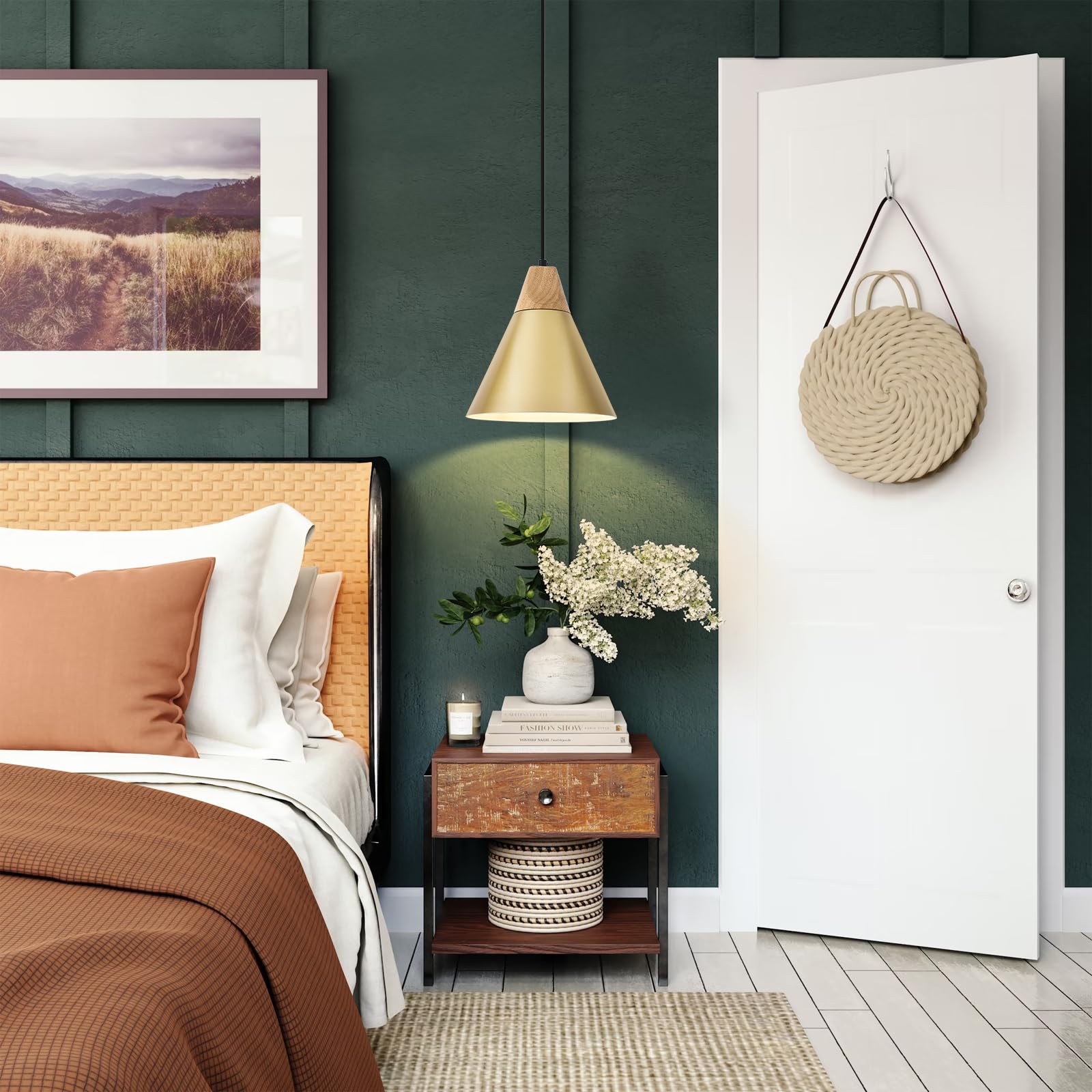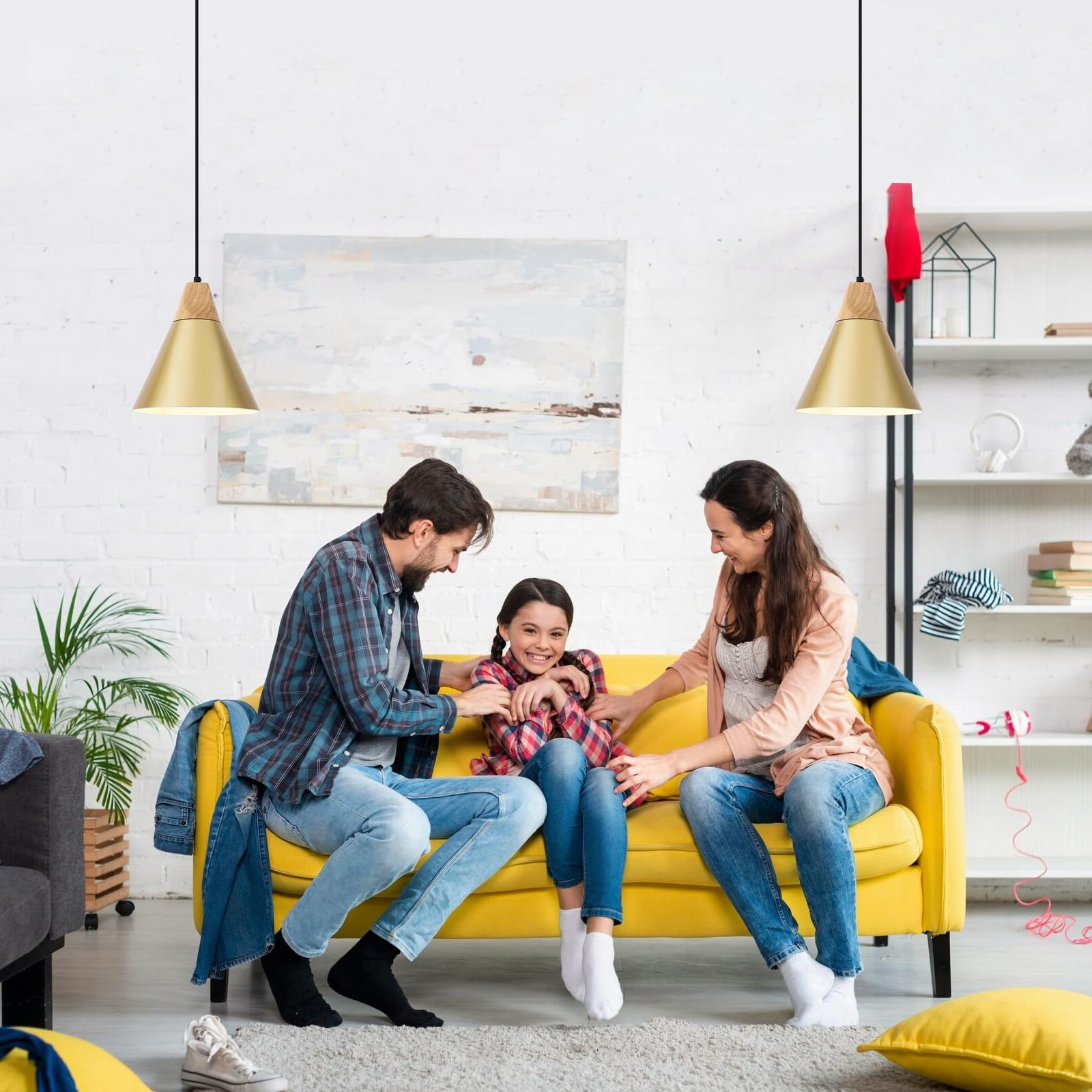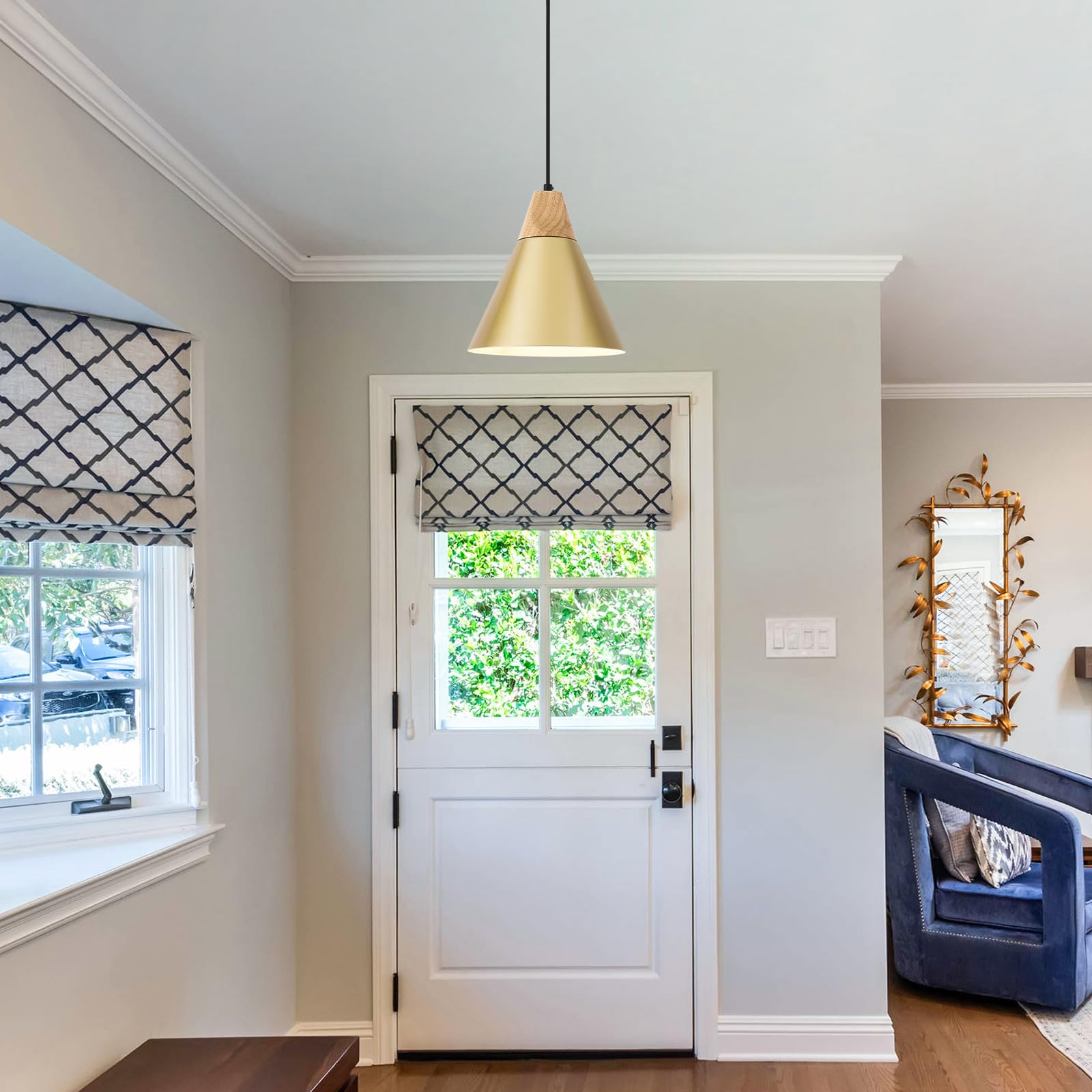• Perfect Design:This 2 packs plug in pendant light combines both vintage and industrial styles. This farmhouse pendant light is gold on the outside and white on the inside. They are perfect for Kitchen, Bedroom, Living Room, Dining Room,Hallway