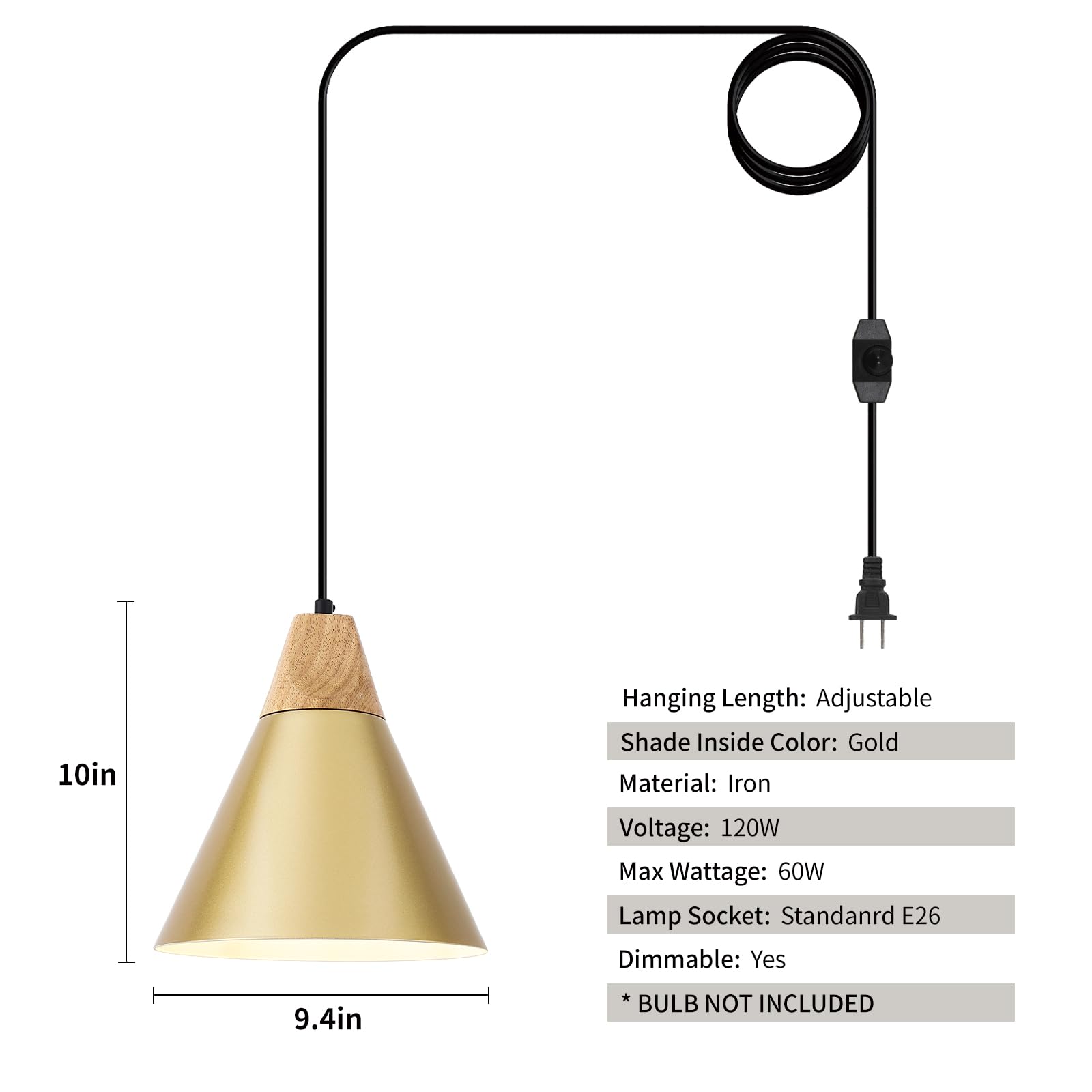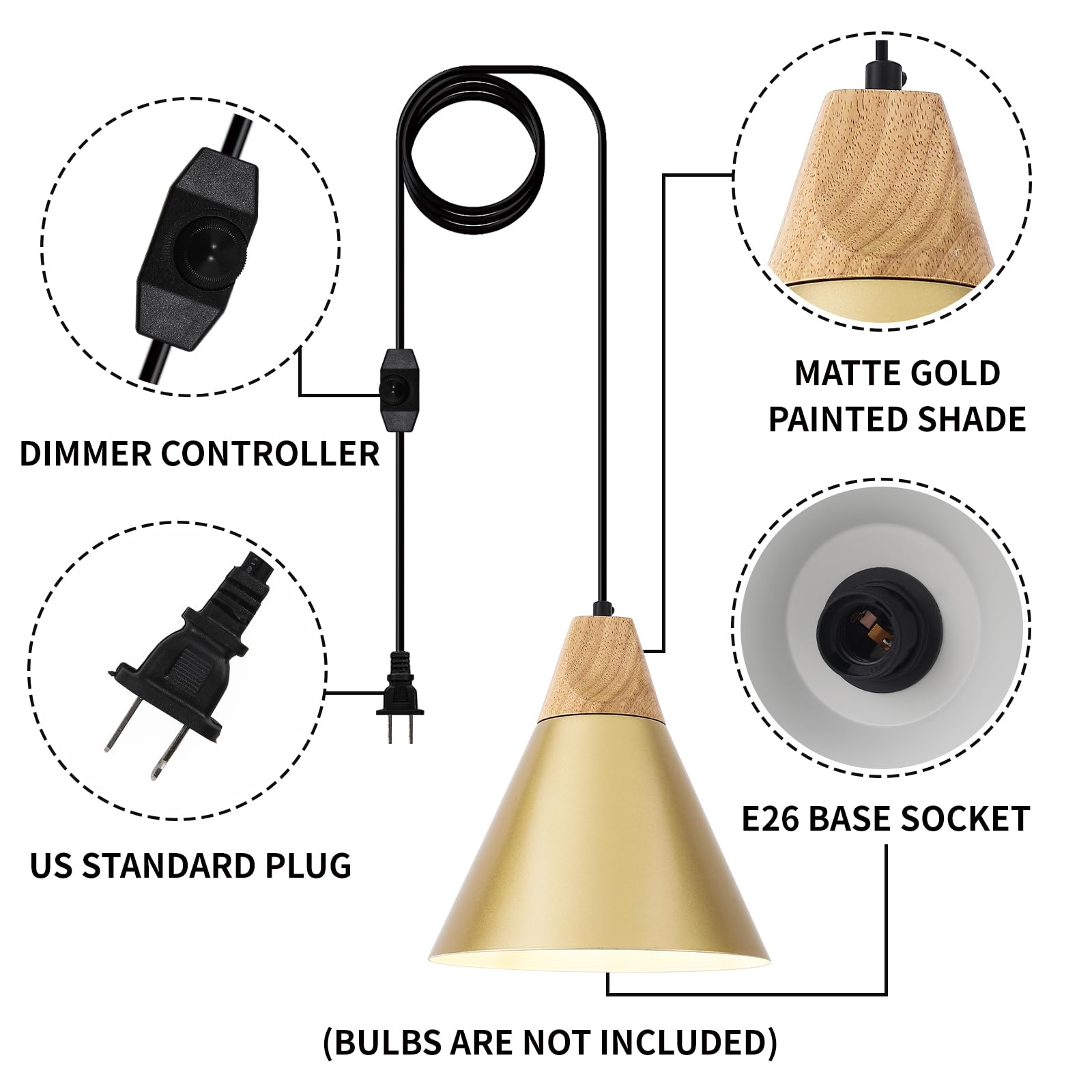 • Easy to Install:The installation steps for this hanging lamp plug in are very simple, you just need to fit the included hooks in the right places and then plug it in and it’s ready to use. This gold pendant light is an E26 base, which is suitable for most bulbs on the market. In addition, I have a brightness adjustment on the cord to adjust the brightness according to the usage scenario