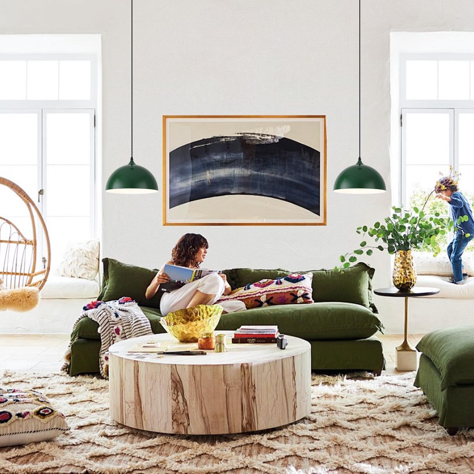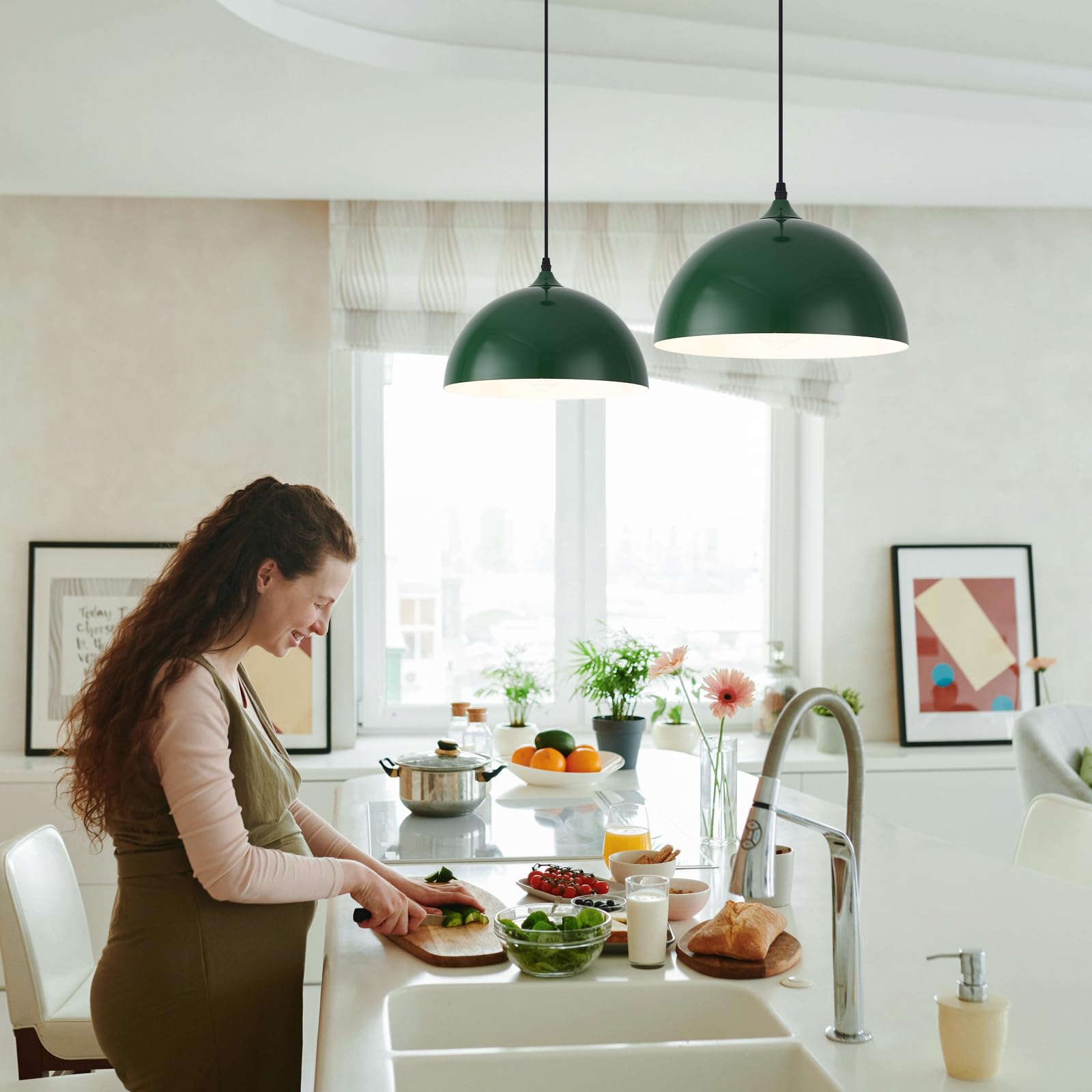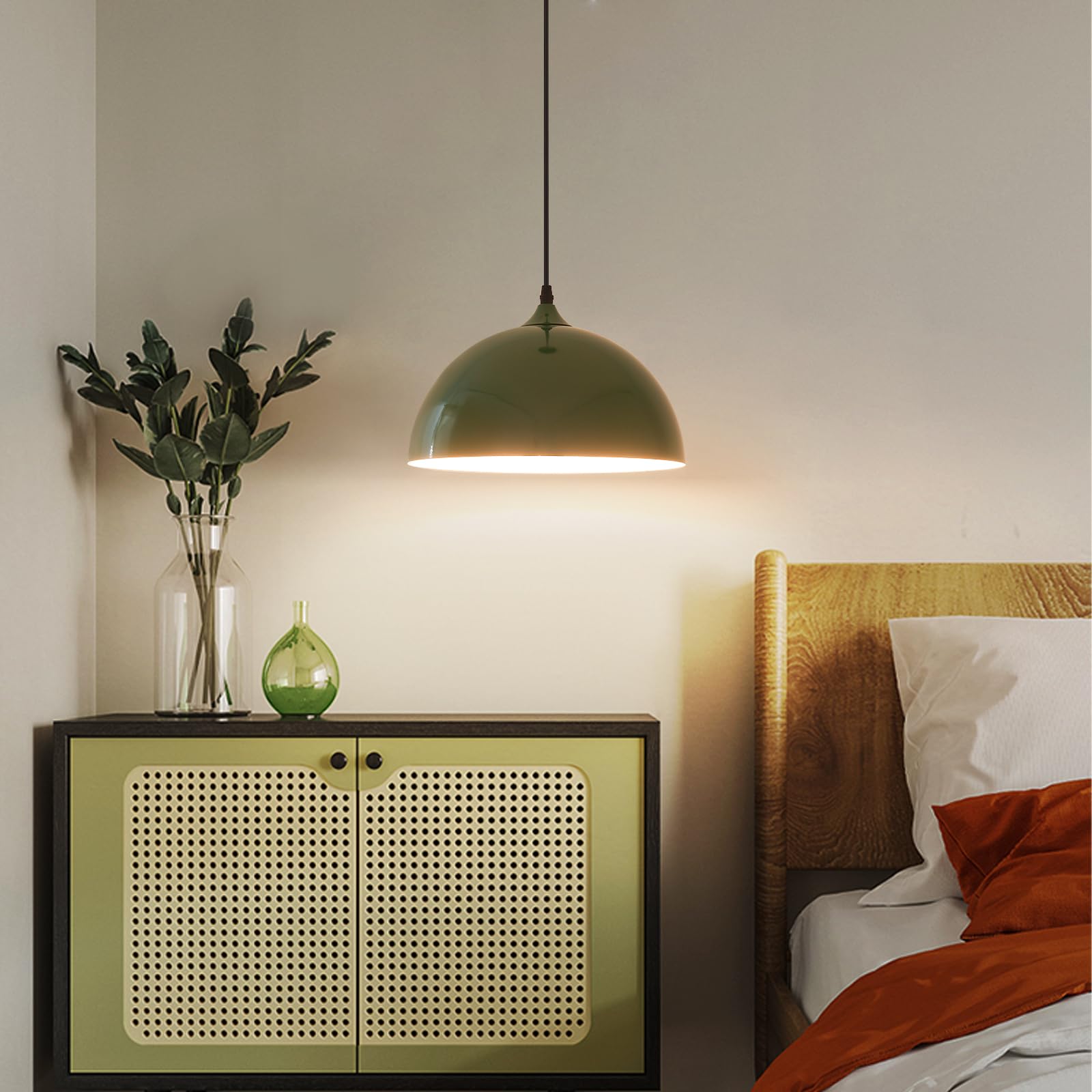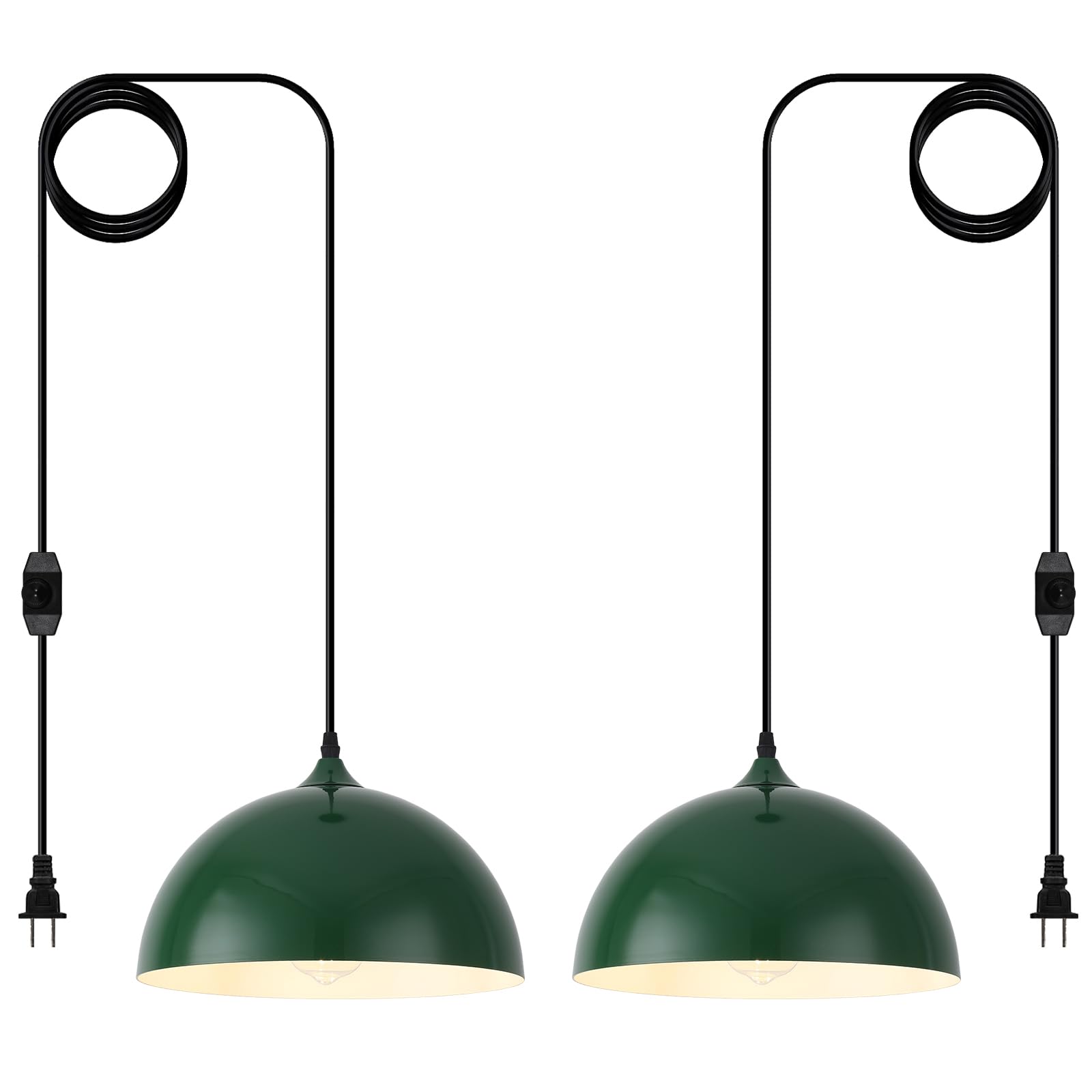 - Perfect Design:This 2 packs plug in pendant light combines both vintage and industrial styles. This farmhouse pendant light is green on the outside and white on the inside. They are perfect for Kitchen, Bedroom, Living Room, Dining Room,Hallway