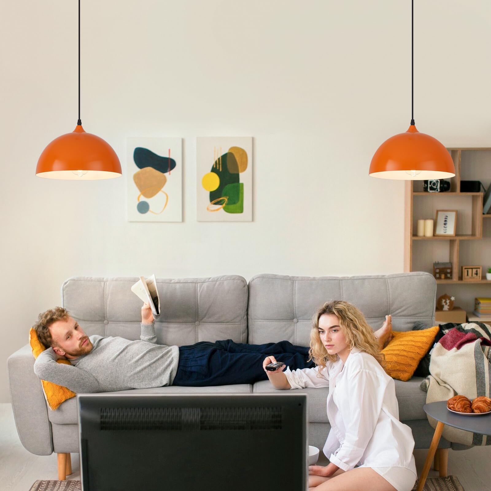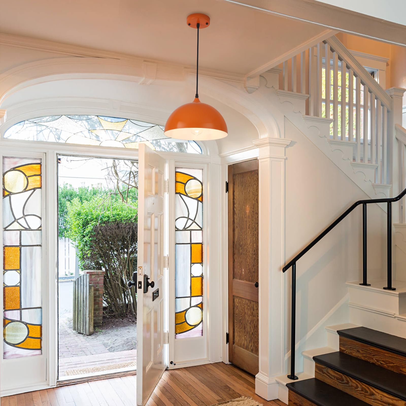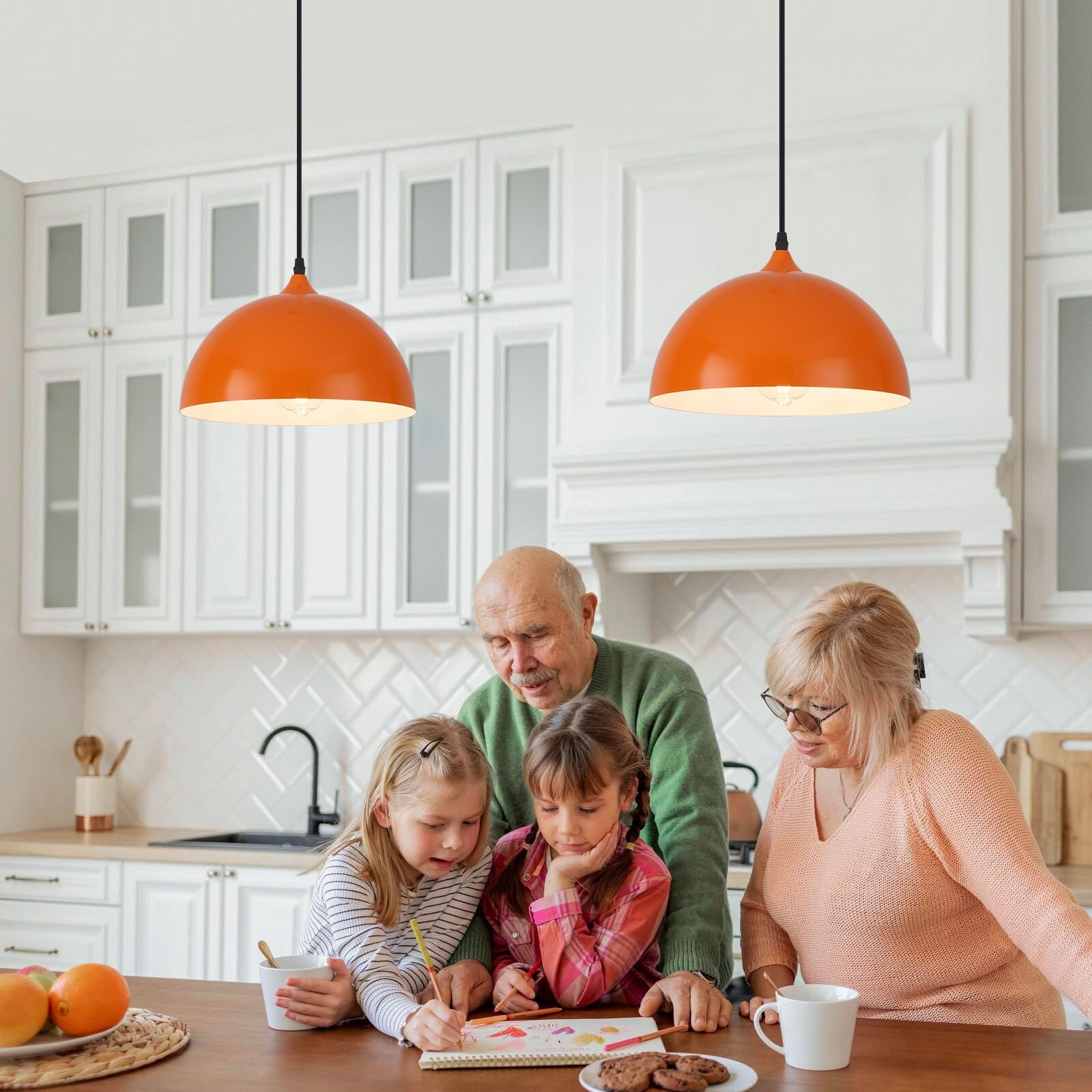 - Bold & Functional Style: Upgrade your space with this set of 2 orange pendant lights, featuring a unique blend of industrial and farmhouse aesthetics. These pendant lights for kitchen island make a striking statement in kitchens, dining rooms, hallways, staircases, restaurants, and more.