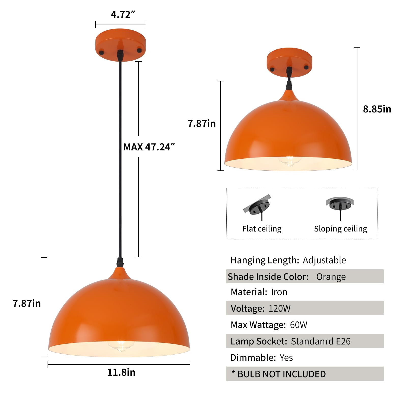 - Adjustable & Compatible Dimensions: Each pendant light fixture measures 11.81″ in diameter and 7.87″ in height, with a 54.7″ adjustable cord for flexible hanging. Fits standard E26 sockets and supports a wide range of bulbs (Max 60W) including LED, Edison, and CFL (110–120V).