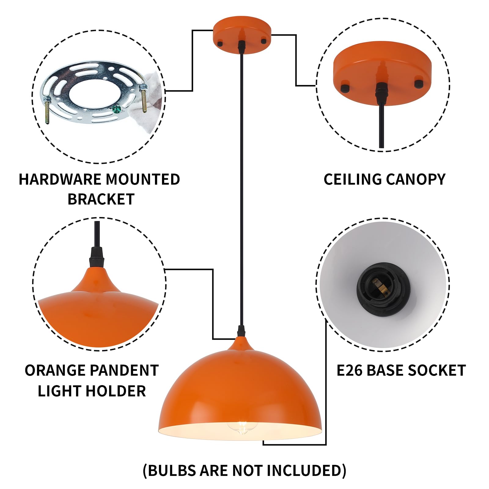 - Durable Build with Natural Accents: Constructed from high-quality metal with a natural wood accent, this industrial pendant light offers both durability and style. The smooth orange finish adds warmth and vibrancy, ideal for both residential and commercial interiors.