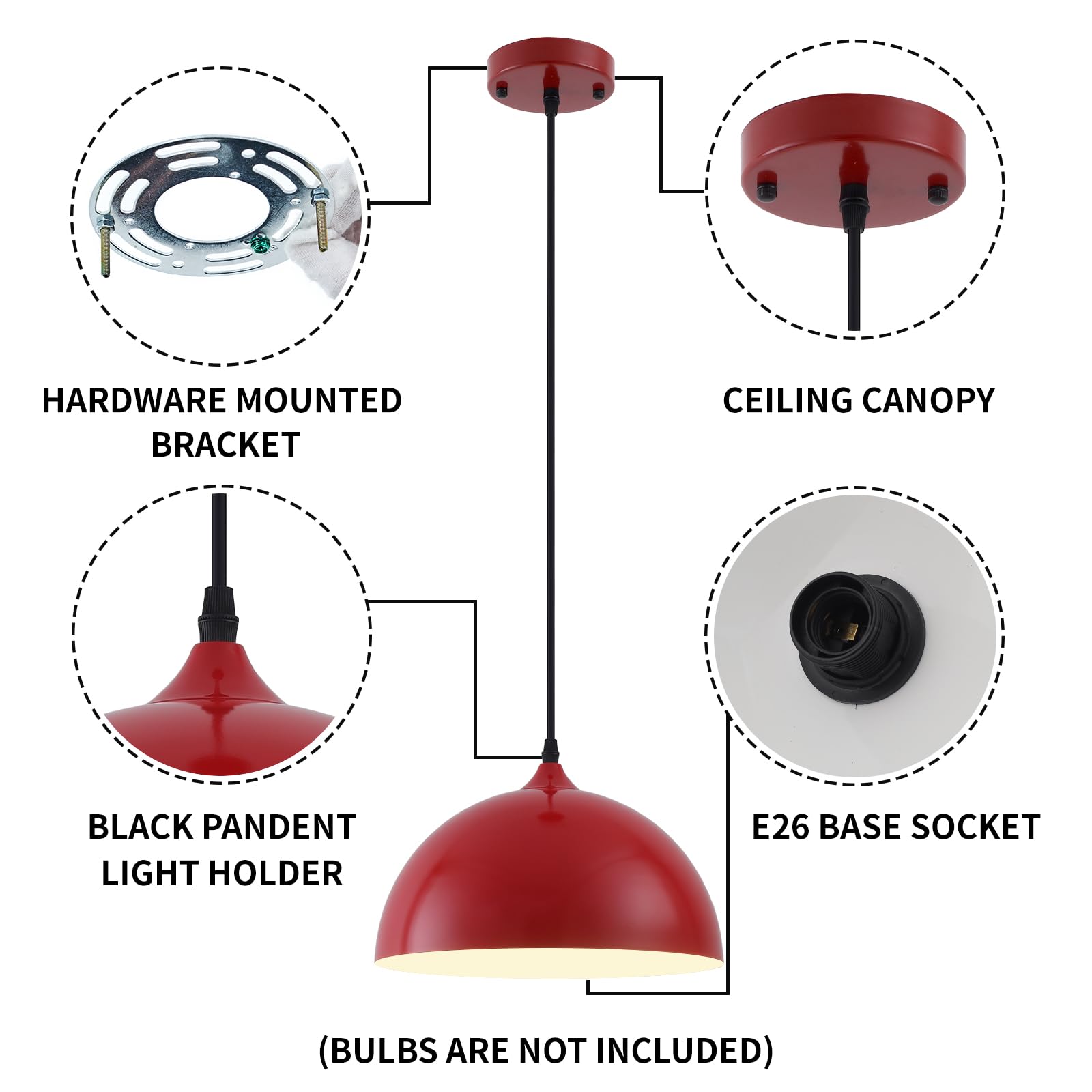 - Ideal Dimension:The size of light fixtures ceiling hanging is 11.81inches W,7.87inches H,with 54.7inch cable,you can adjust according to you .E26 US socket, compatible with a variety of bulbs(Max:60W).Likes Edison,CFL or LED light bulbs, 110-120V. [NOTE]:BULB NOT INCLUDE