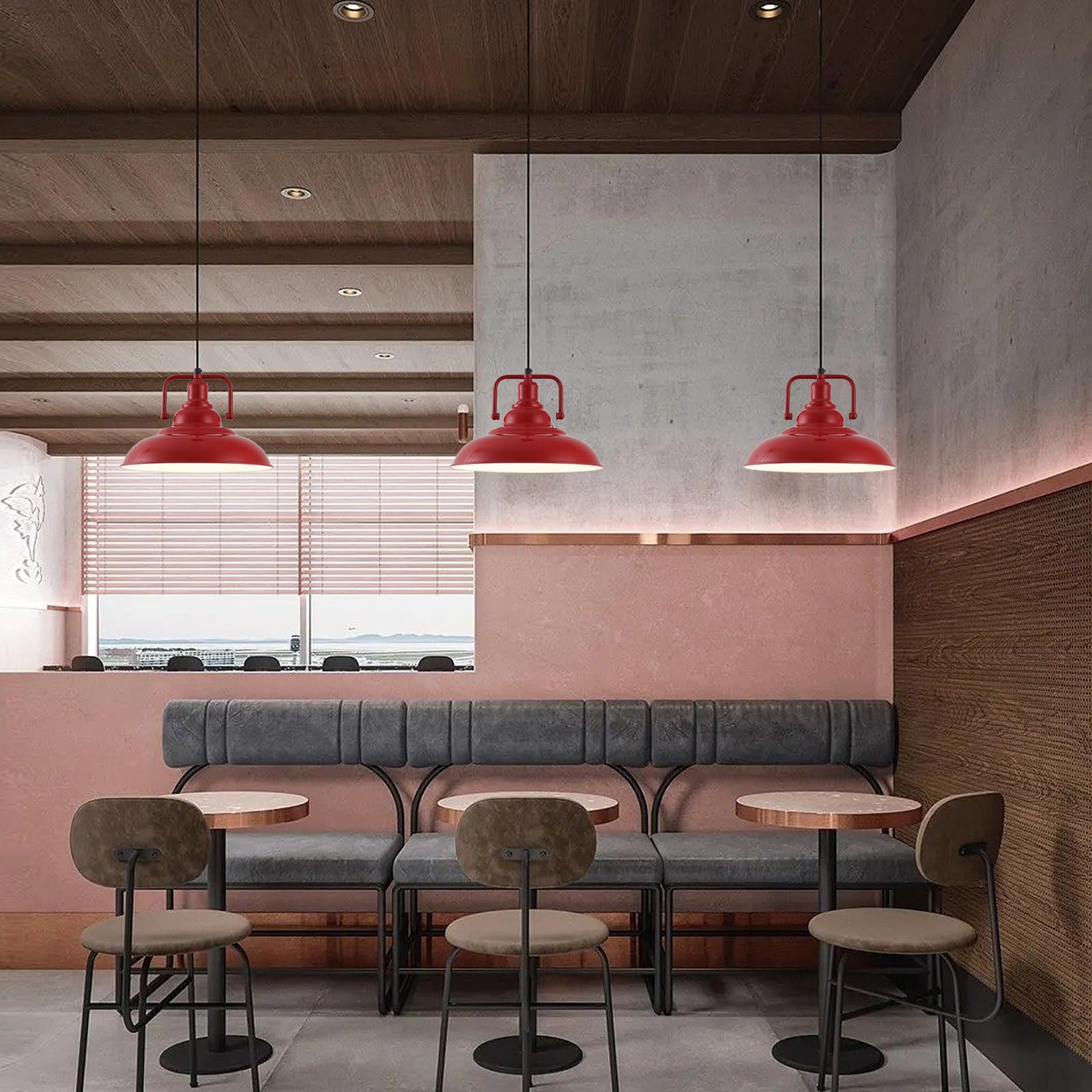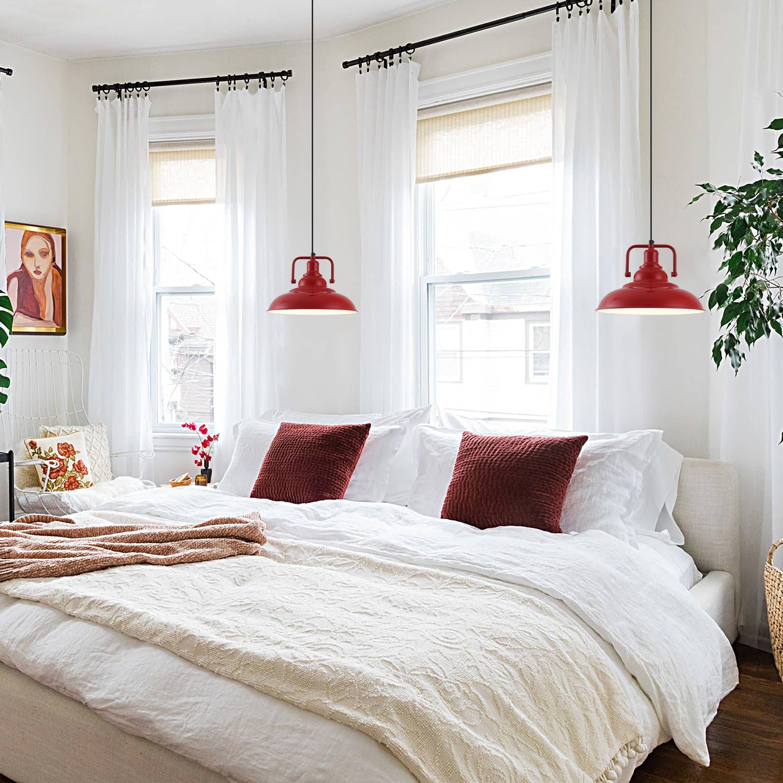 Red Farmhouse Pendant Lights 3 Packs, Metal Pendant Lights Kitchen Island, Industrial Pendant Light, Hanging Island Pendant Light, Barn Light for Kitchen, Living Room, Bedroom, Hallway