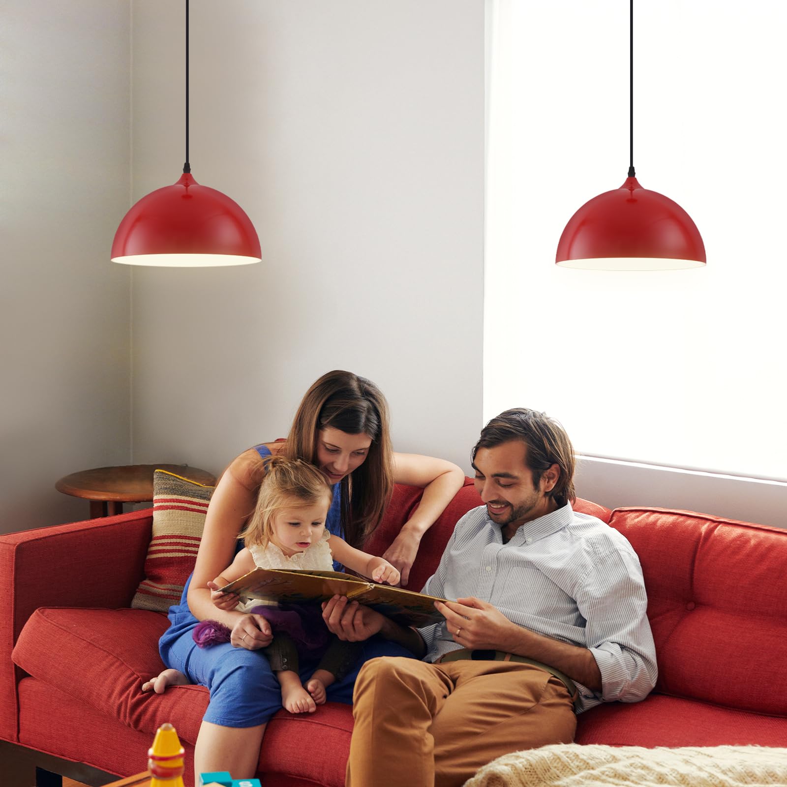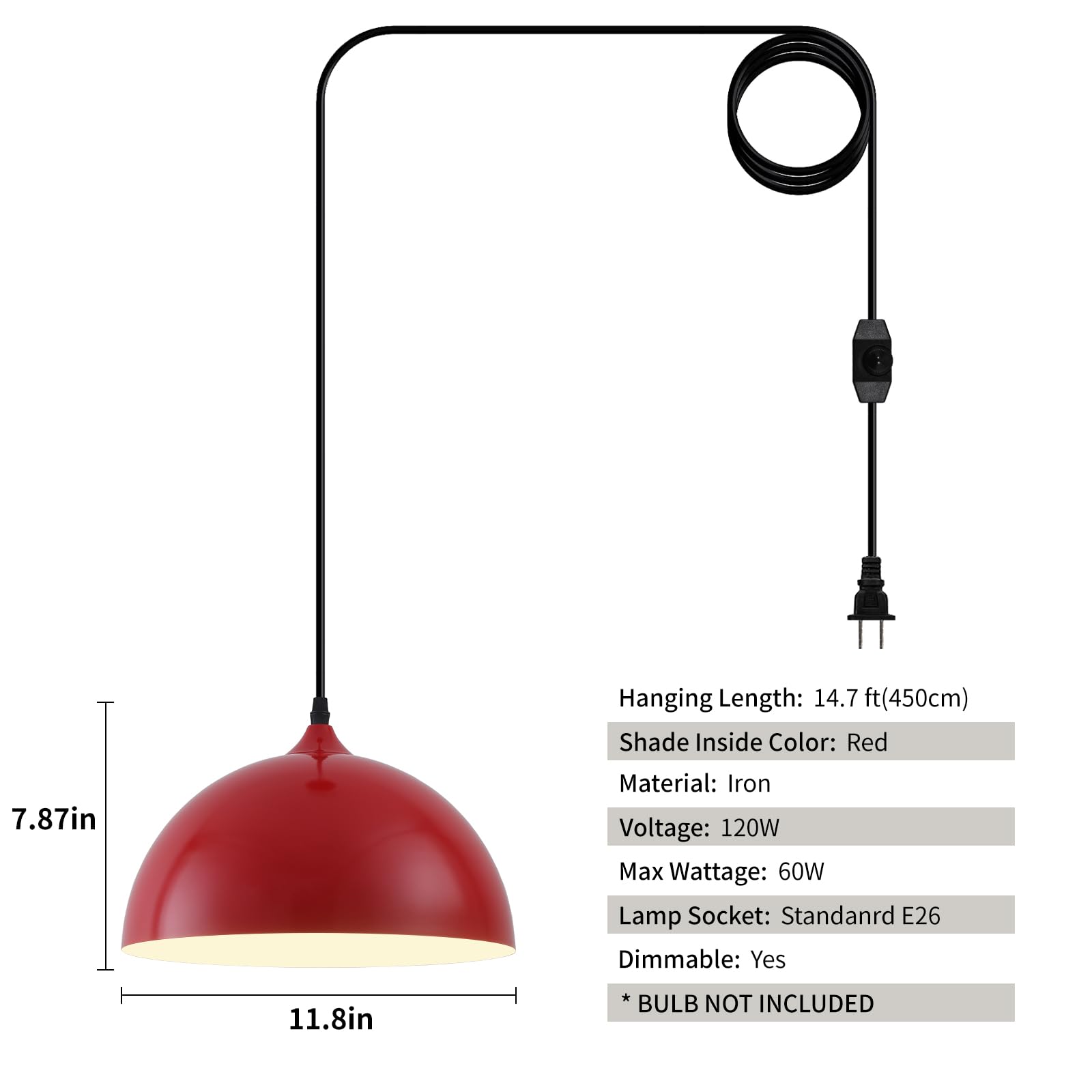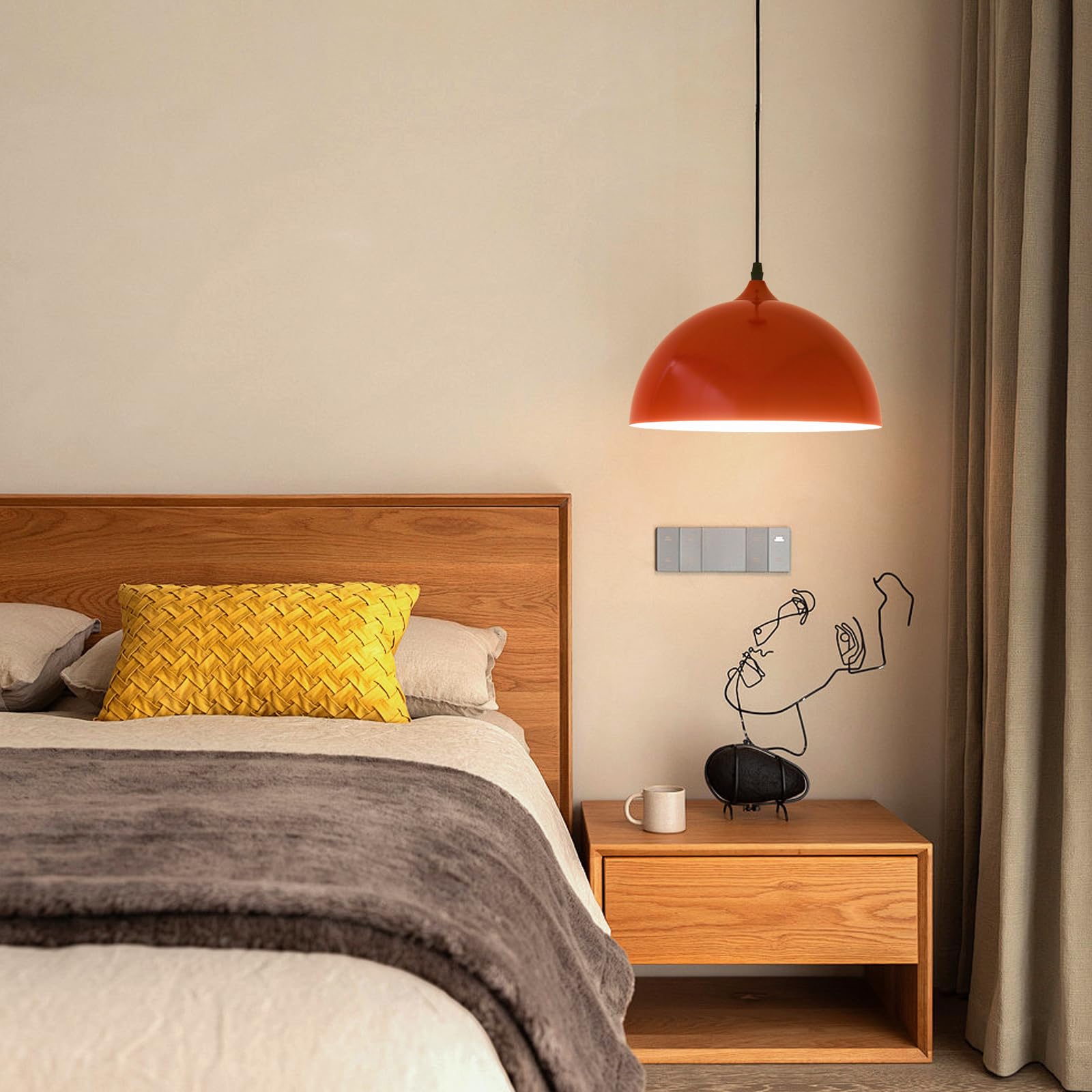 - Perfect Design:This 2 packs plug in pendant light combines both vintage and industrial styles. This farmhouse pendant light is red on the outside and white on the inside. They are perfect for Kitchen, Bedroom, Living Room, Dining Room,Hallway