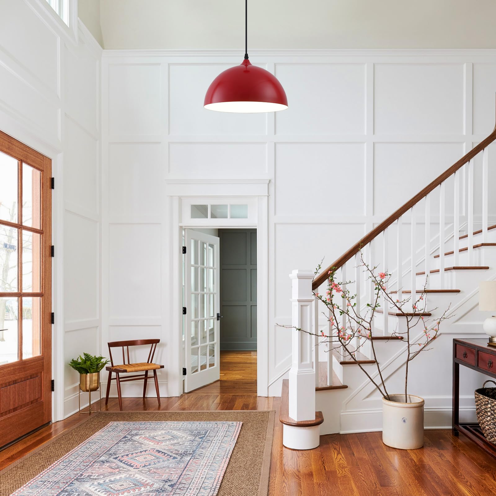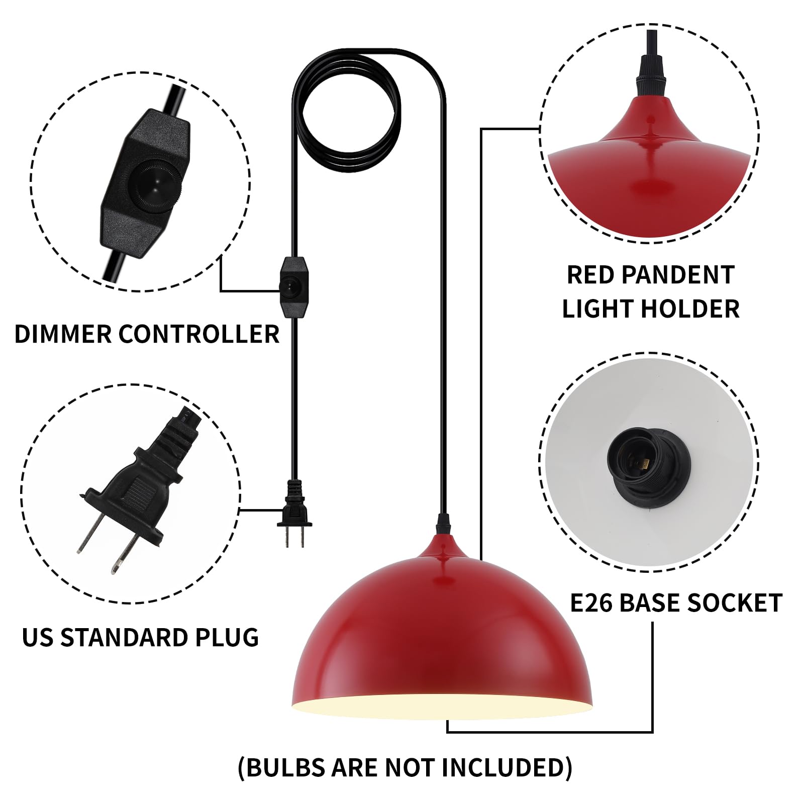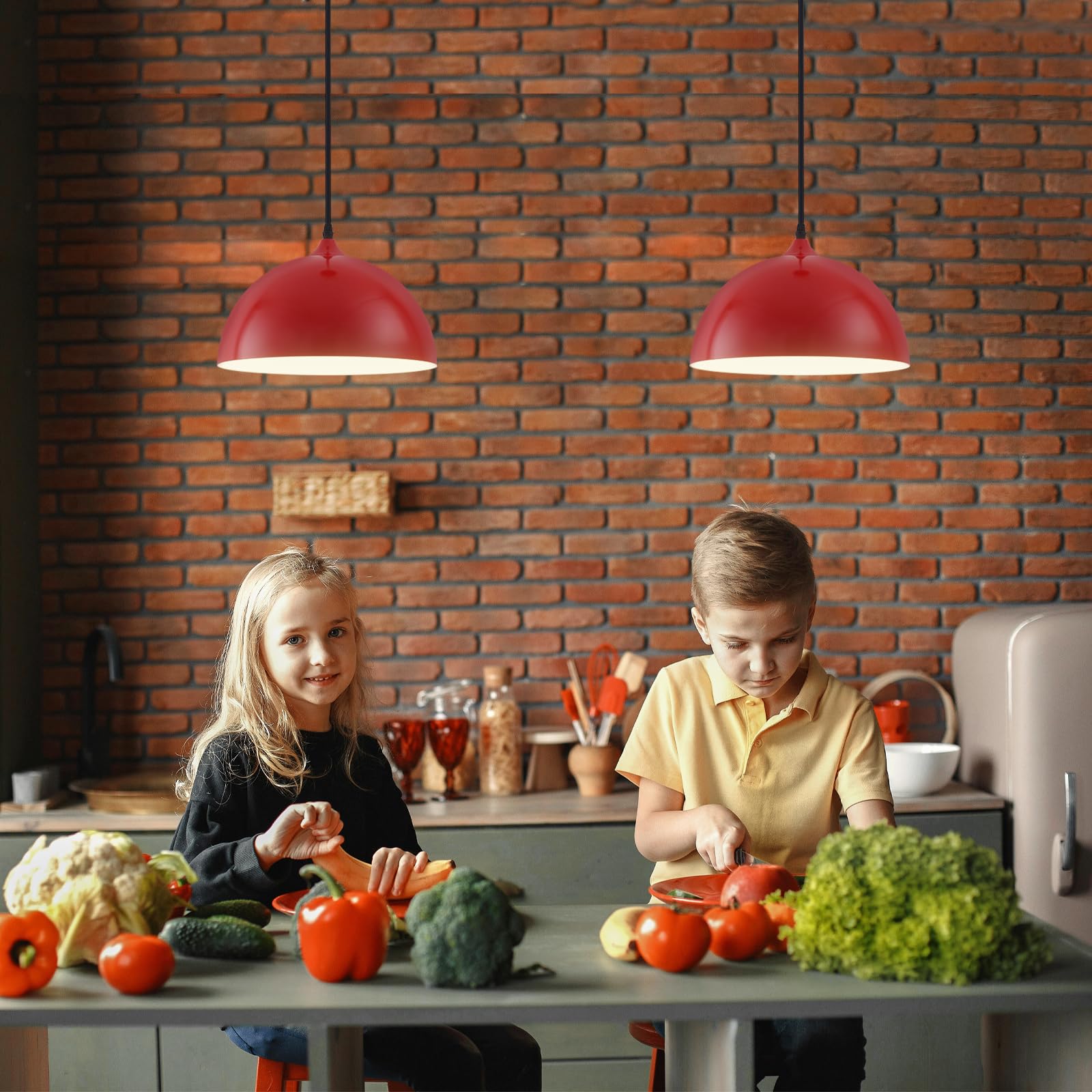 - Perfect Design:This 2 packs plug in pendant light combines both vintage and industrial styles. This farmhouse pendant light is red on the outside and white on the inside. They are perfect for Kitchen, Bedroom, Living Room, Dining Room,Hallway