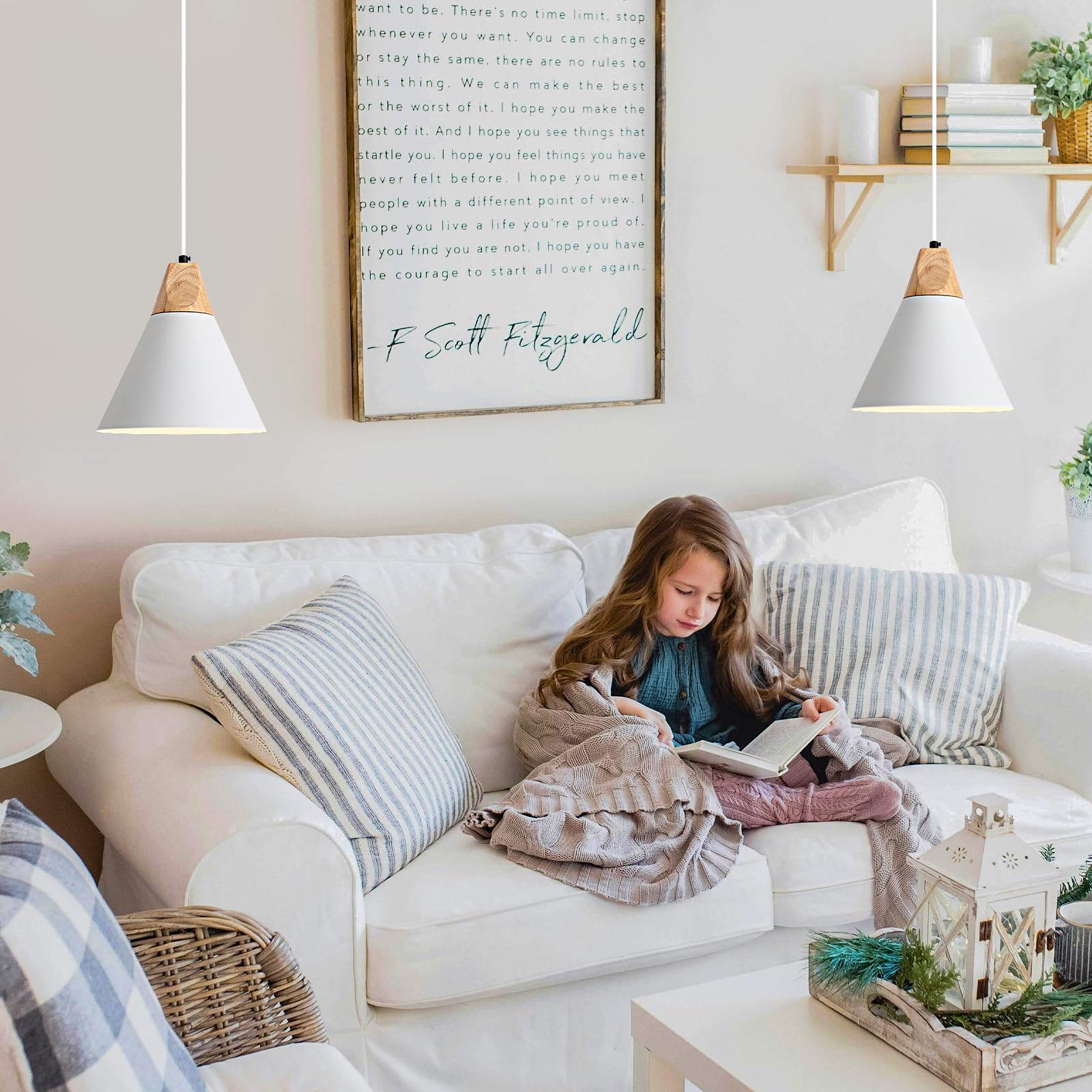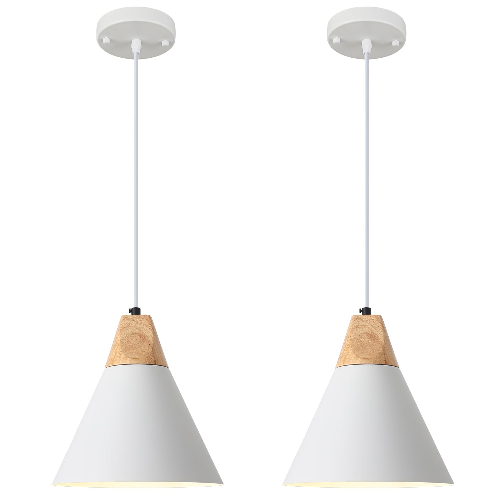 White Pendant Light, 2 Packs 9.4inch Farmhouse Pendant Light, Kitchen Pendant Lights, Pendant Lights Kitchen Island for Living Room, Bar, Bedroom, Office